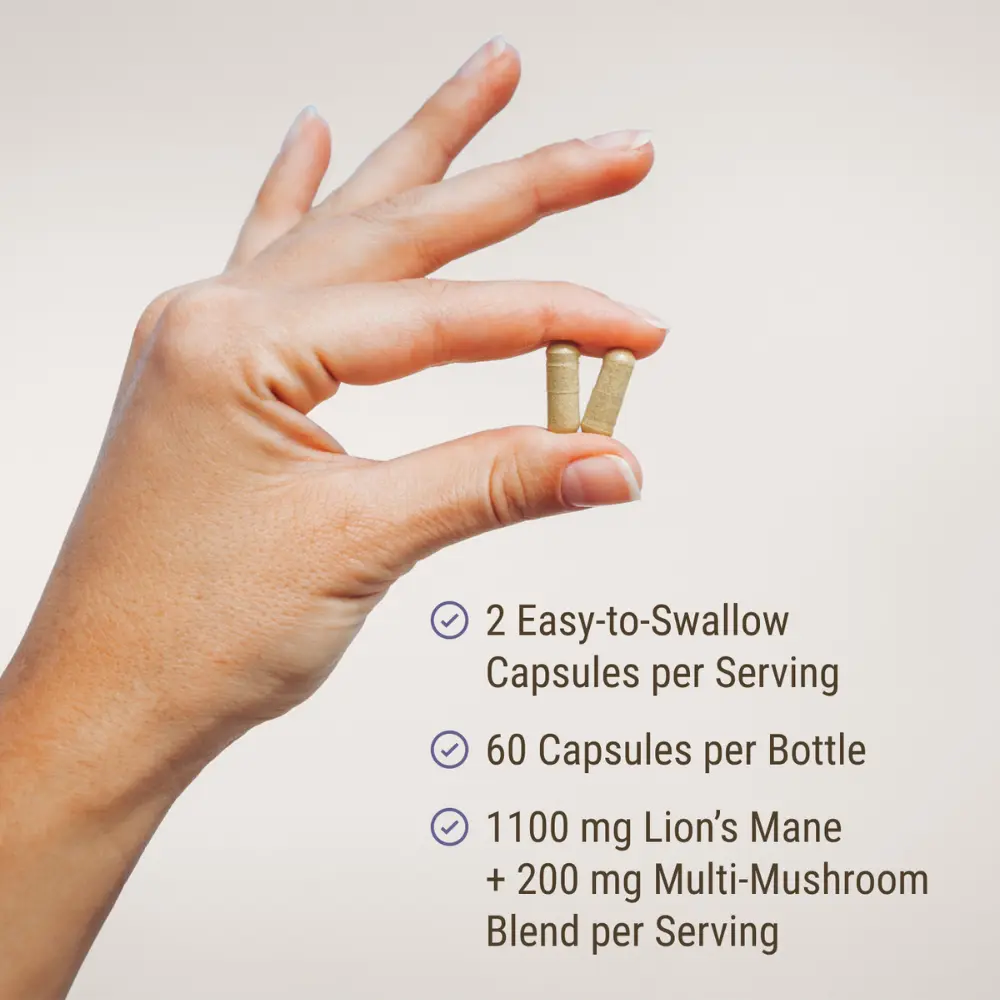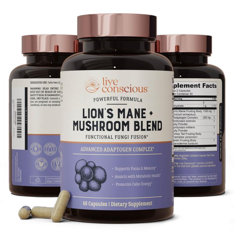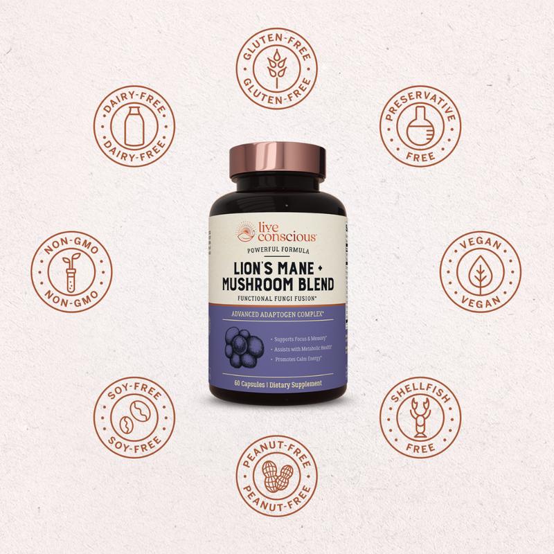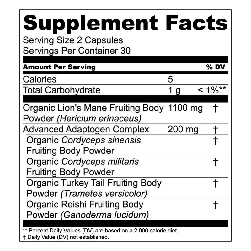 ·Lion's Mane Mushroom (Hericium erinaceus): This functional mushroom supplement supports cognitive function, promotes mood & mental health, memory, and reinforces a healthy gut microbiome while providing immune support.*