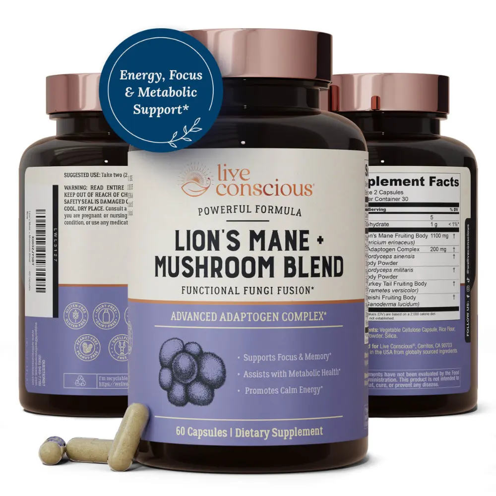 ·Advanced Adaptogen Complex: This multi-mushroom blend consists of turkey tail, reishi, Cordyceps sinensis, and Cordyceps militaris. Alongside lion’s mane, these mushrooms work together to make an essential cognitive and immune support supplement.*