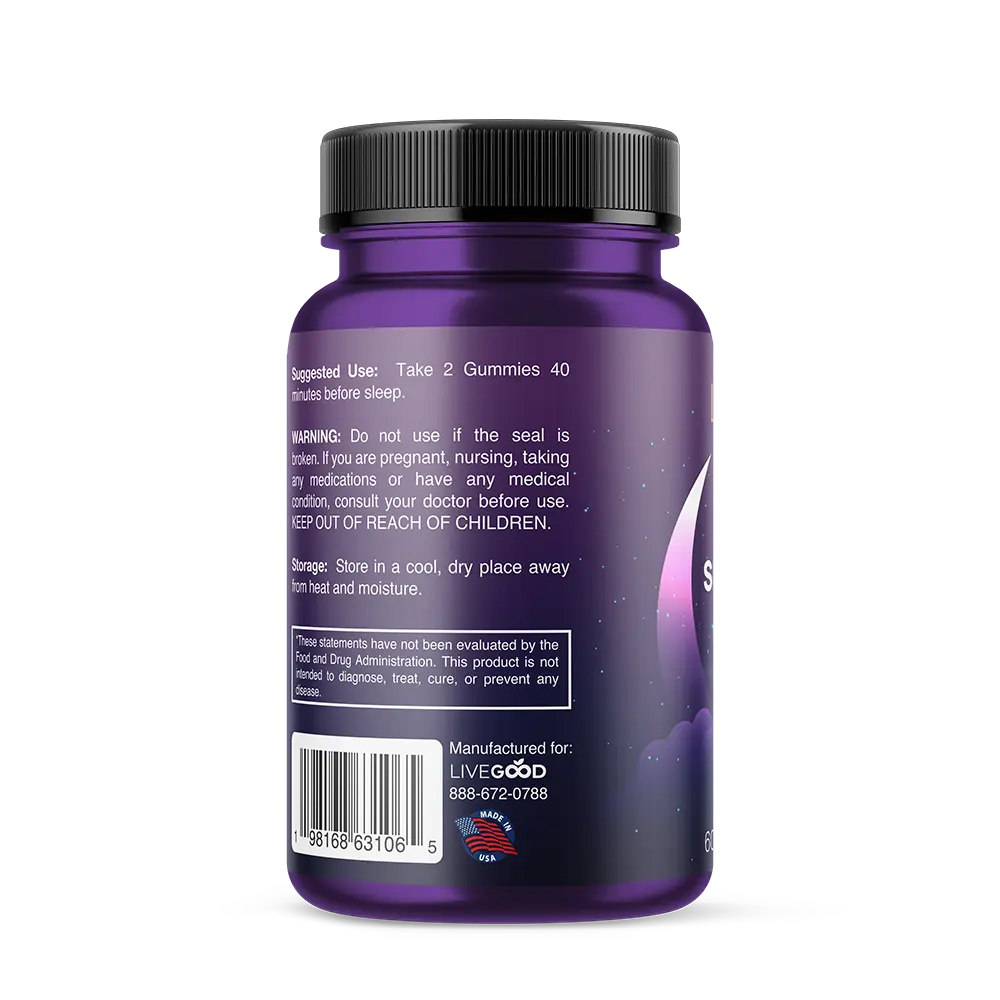 Brand LIVEGOOD Product Name CBN Sleep Gummies Form Gummies Serving Size15mg CBN per serving Quantity 60 Gummies (30 Servings) Certifications Non-GMO, Gluten-Free, Vegan, Third-Party Tested Country of Origin USA
