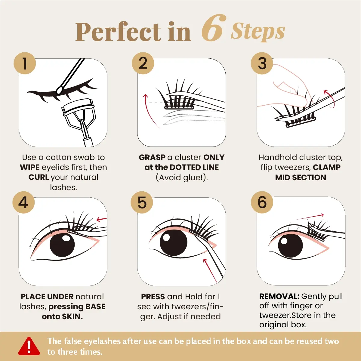 ·Reusable 2-3 Times: Store in included case to maintain curl and adhesive strength.