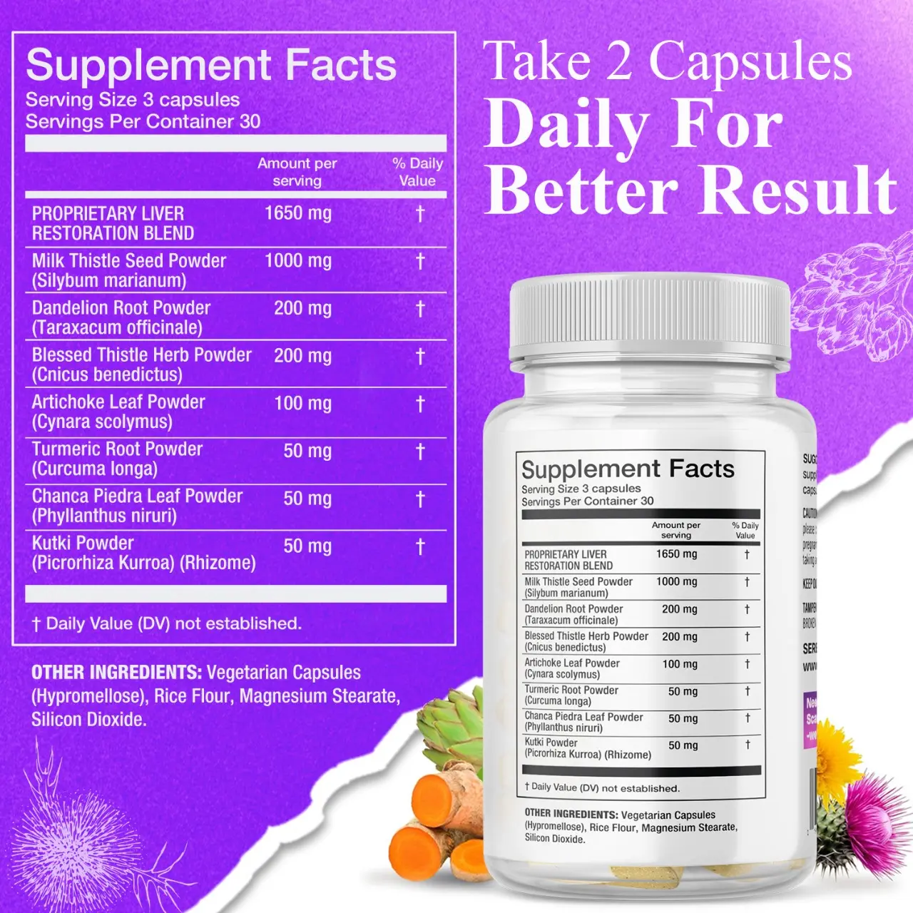Our pure health liver support formula features a targeted blend of powerful herbs, including Milk Thistle and Artichoke Extract, known for their ability to support liver health, improve digestion, and enhance nutrient absorption for both men and women.