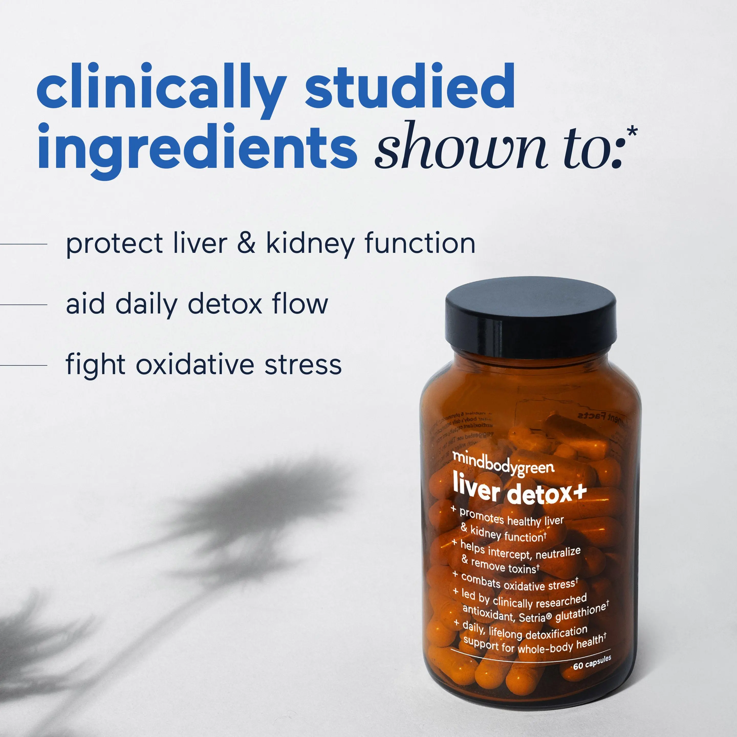 mindbodygreen Liver Detox+ is a clinically researched antioxidant supplement designed to support healthy liver and kidney function. Each pack contains 60 capsules, offering detox support to promote liver and whole-body cleanup*. Perfect for healthcare and fitness enthusiasts looking to enhance their well-being naturally.