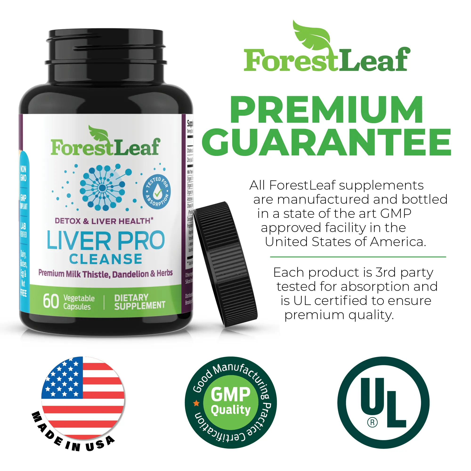 ·MANUFACTURED SAFELY - ForestLeaf fatty liver supplements are made with vegetable capsules and are dairy, gluten, egg, and nut free. All of our products and pills are tested for maximum absorption.