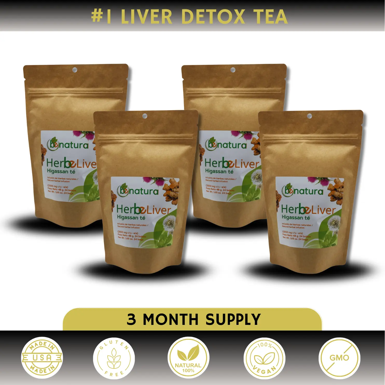 Sourced from high-quality herbs, free from artificial additives. This ensures a pure and wholesome tea. The tea is 100% natural, making it an ideal choice for those who prefer natural products. Each bag contains a unique mix of boldo, corn silk, turmeric, dandelion, and milk thistle.