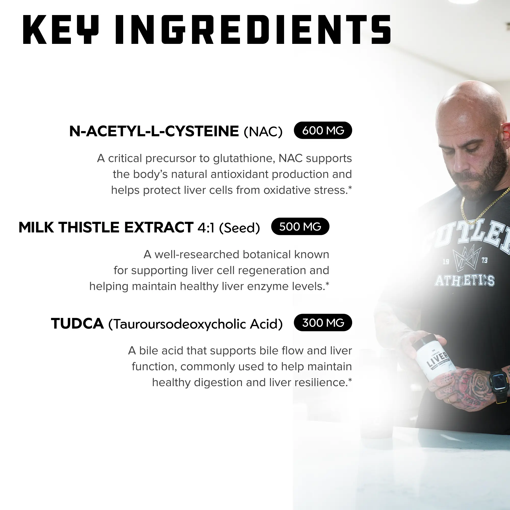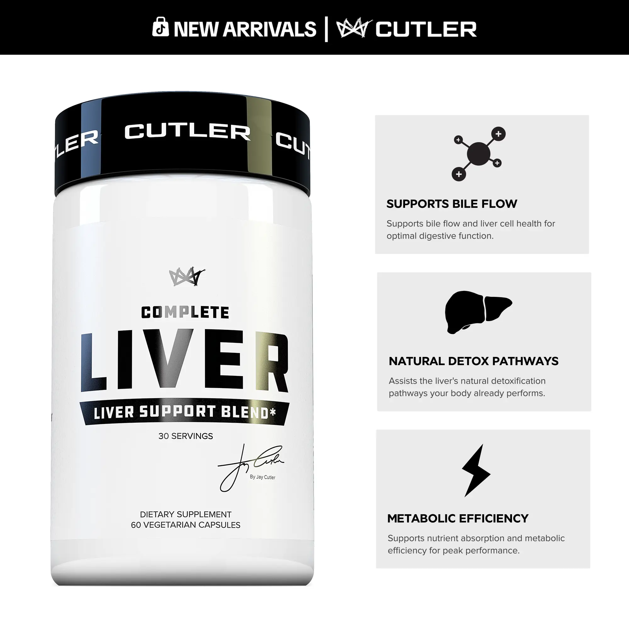 Cutler Nutrition's Complete Liver is a comprehensive supplement for natural liver detox and bile flow support. It features TUDCA, ALA, NAC, and Milk Thistle. The formula supports liver detox pathways, antioxidant defense, and metabolic function. Perfect for athletes and active individuals aiming for optimal health.