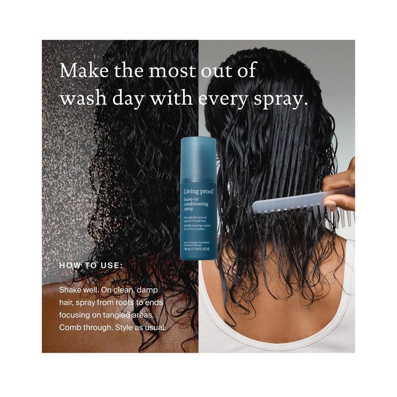 Living Proof Leave-In Conditioning Spray is a strengthening leave-in for thicker-looking hair. It provides lightweight, all-day moisture and long-lasting detangling. Formulated to defend against various sources of damage and stress, it helps maintain hair’s strength and health over time. A must-have for every wash day.