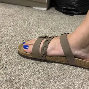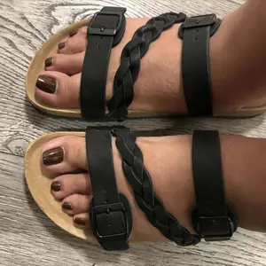 Beautiful! I have narrow feet and most Birkenstock style shoes make my feet look wide so these shoes frame them nicely while also providing SUPER comfortable padding like walking on clouds! Love that the straps are adjustable too and the braid design is so pretty!