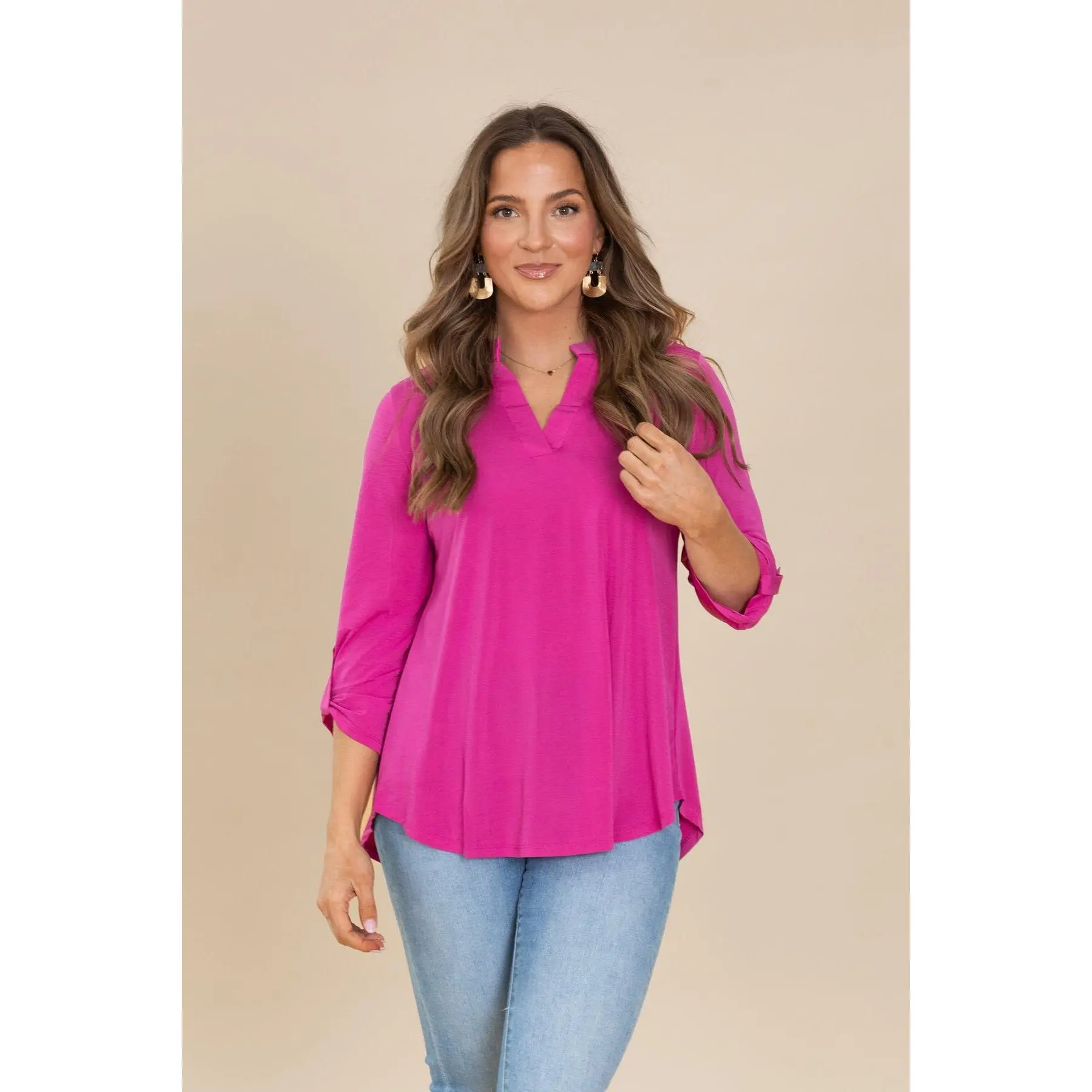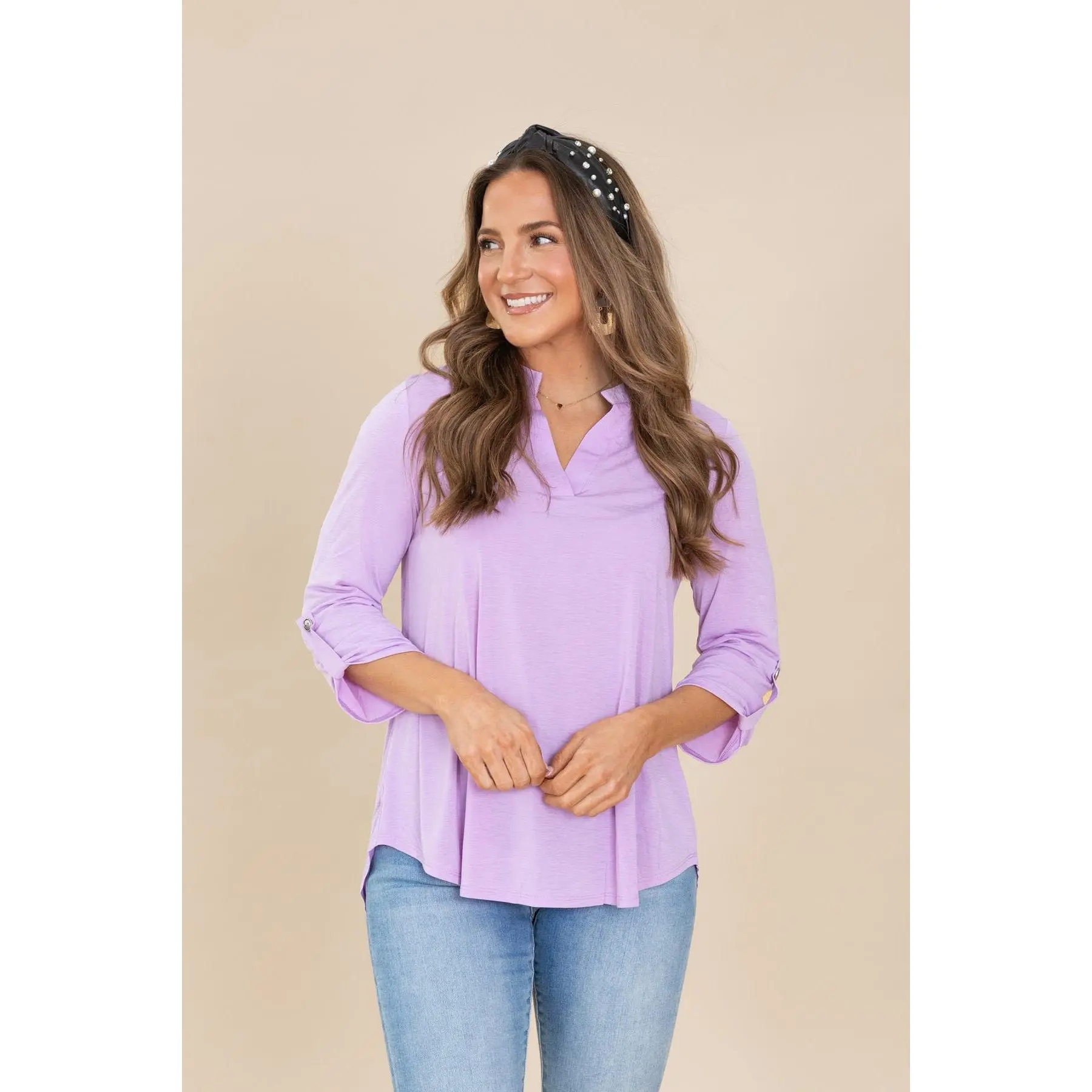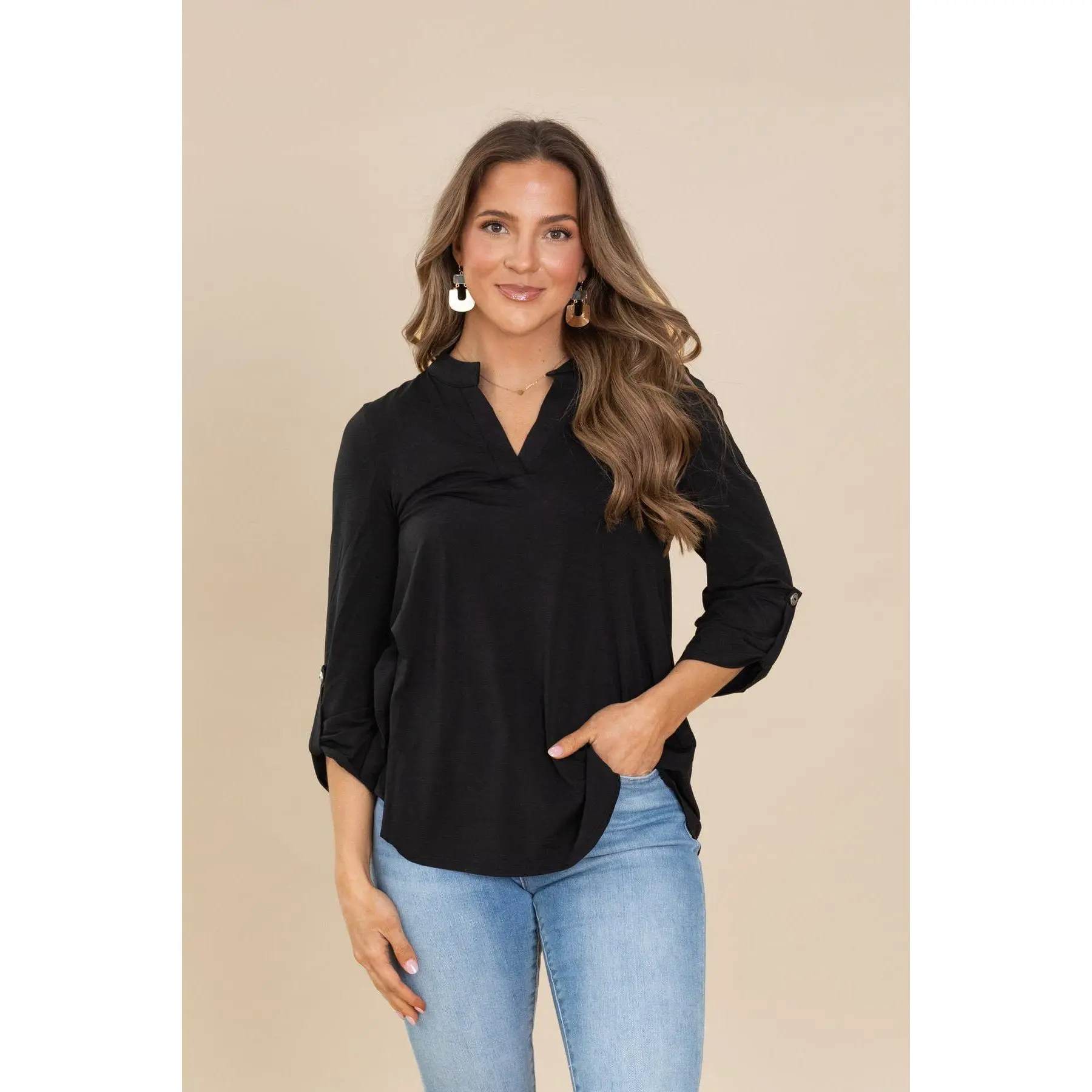 5. Lizzy Notch Neck Wrinkle Free Top