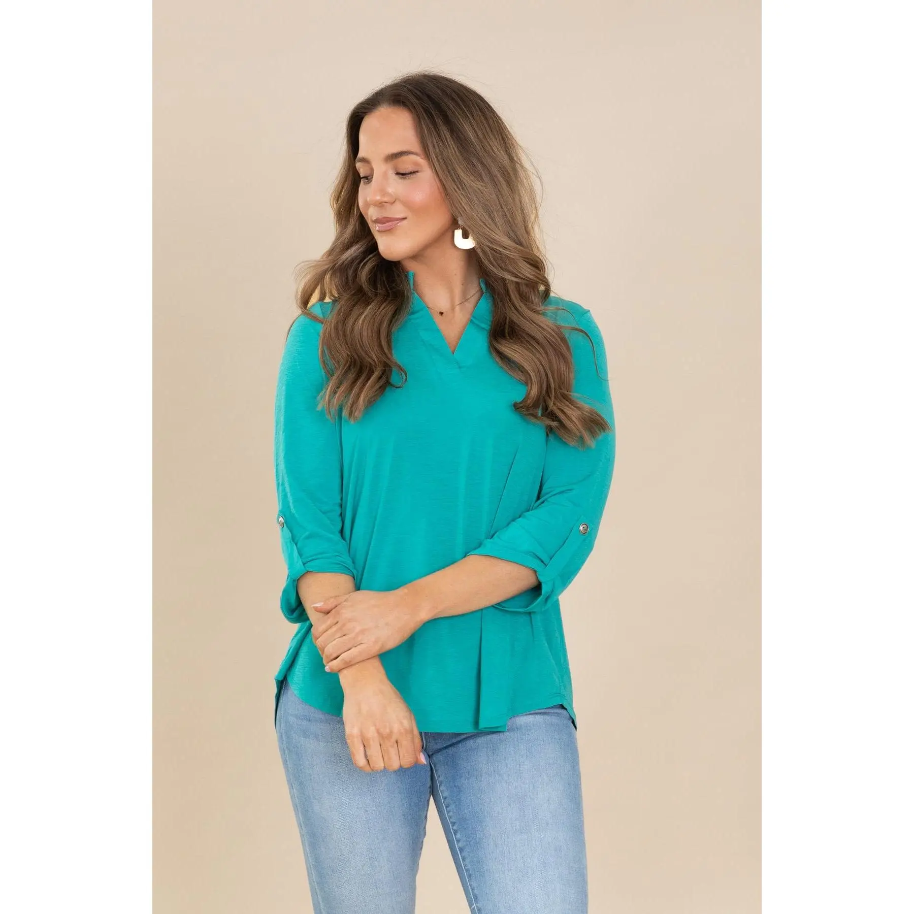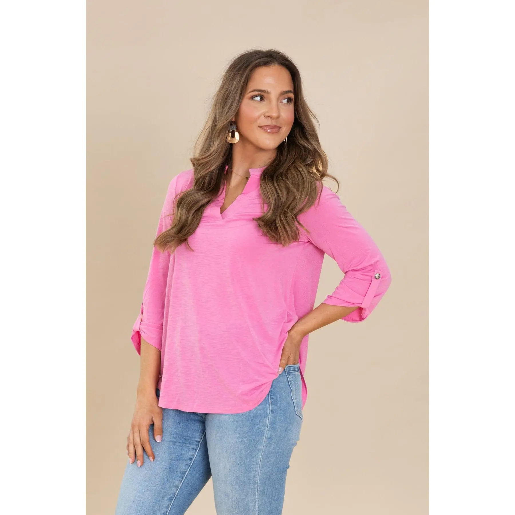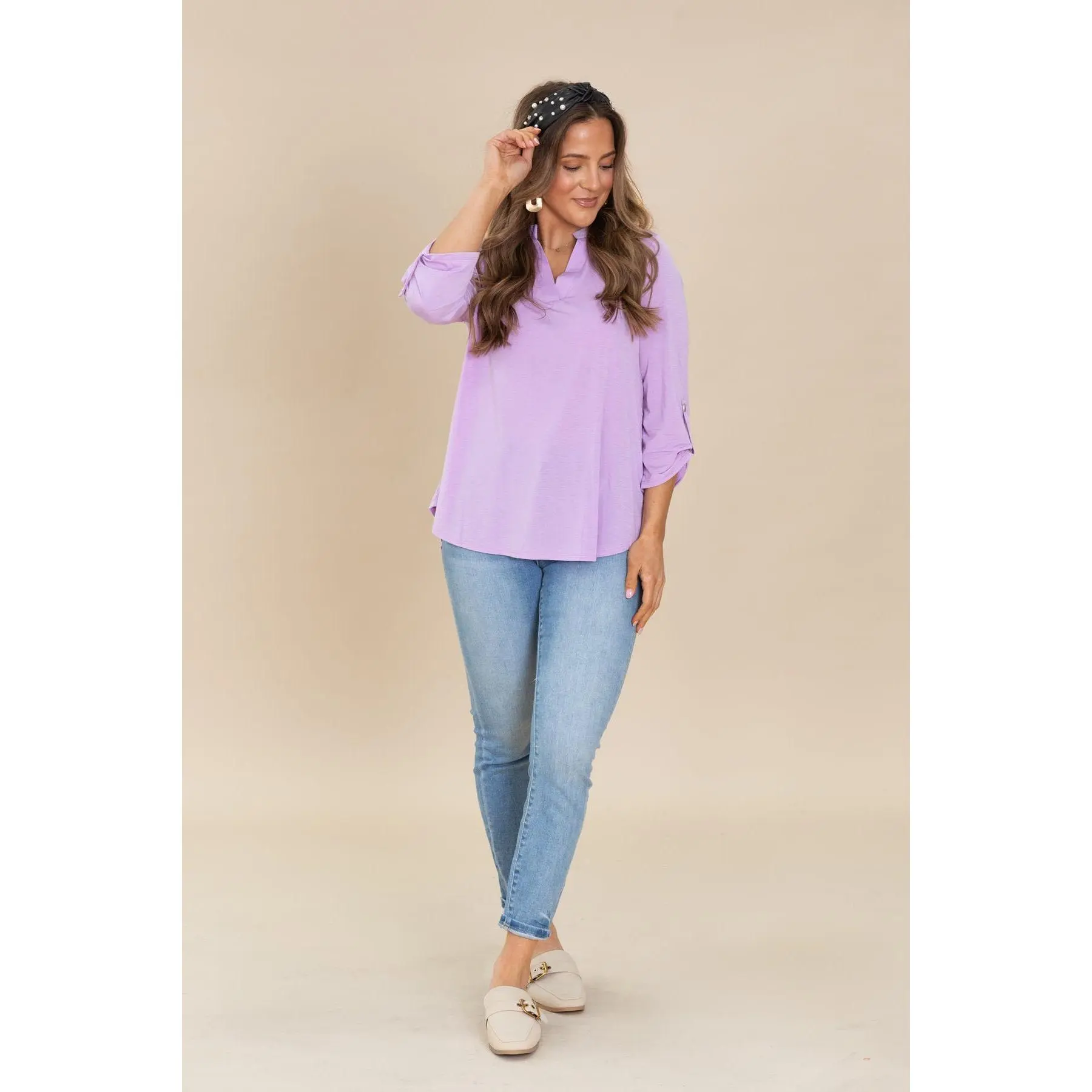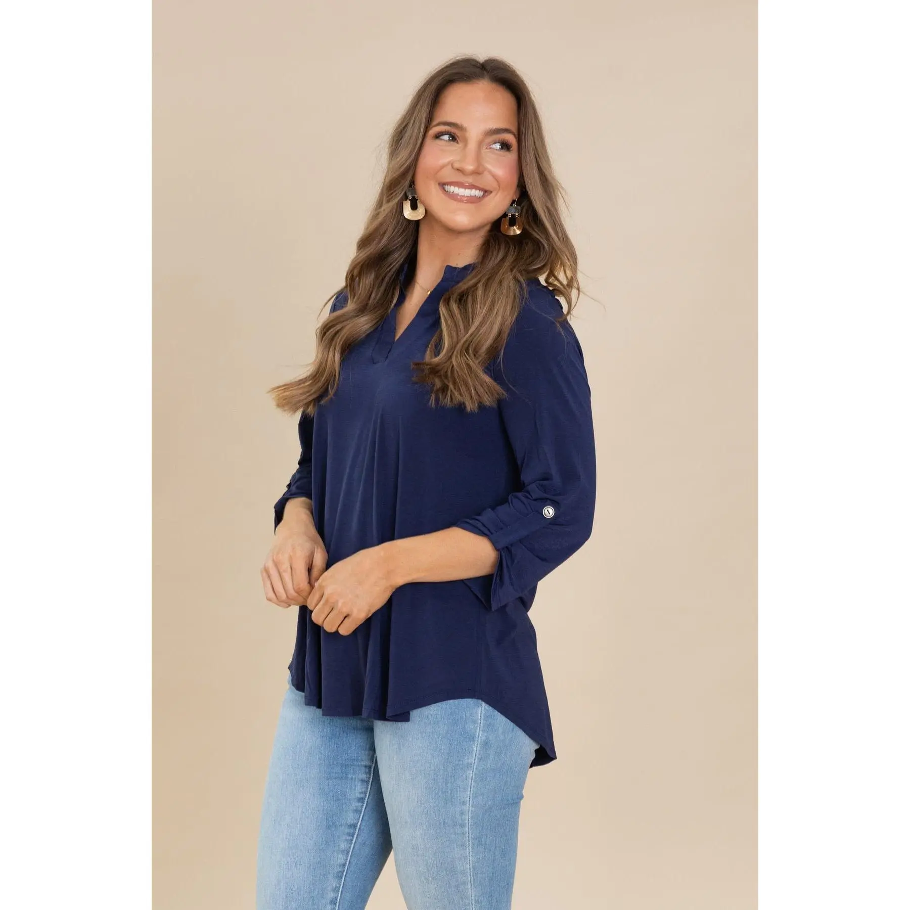 5. Lizzy Notch Neck Wrinkle Free Top