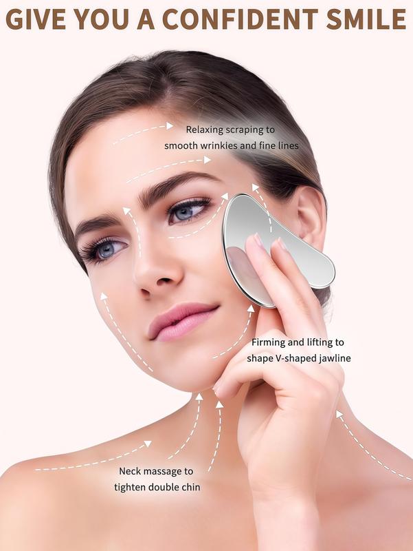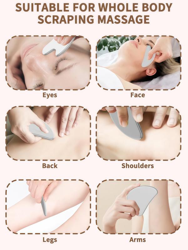 ·Full-Body Gua Sha Tool for Deep Face Massage & Relaxation: More than just a facial massager, this body gua sha stainless steel provides deep tissue massage for the face, neck, shoulders, and back. Its smooth, ergonomic design ensures effortless gliding, relieving muscle tension and supporting better lymphatic drainage.