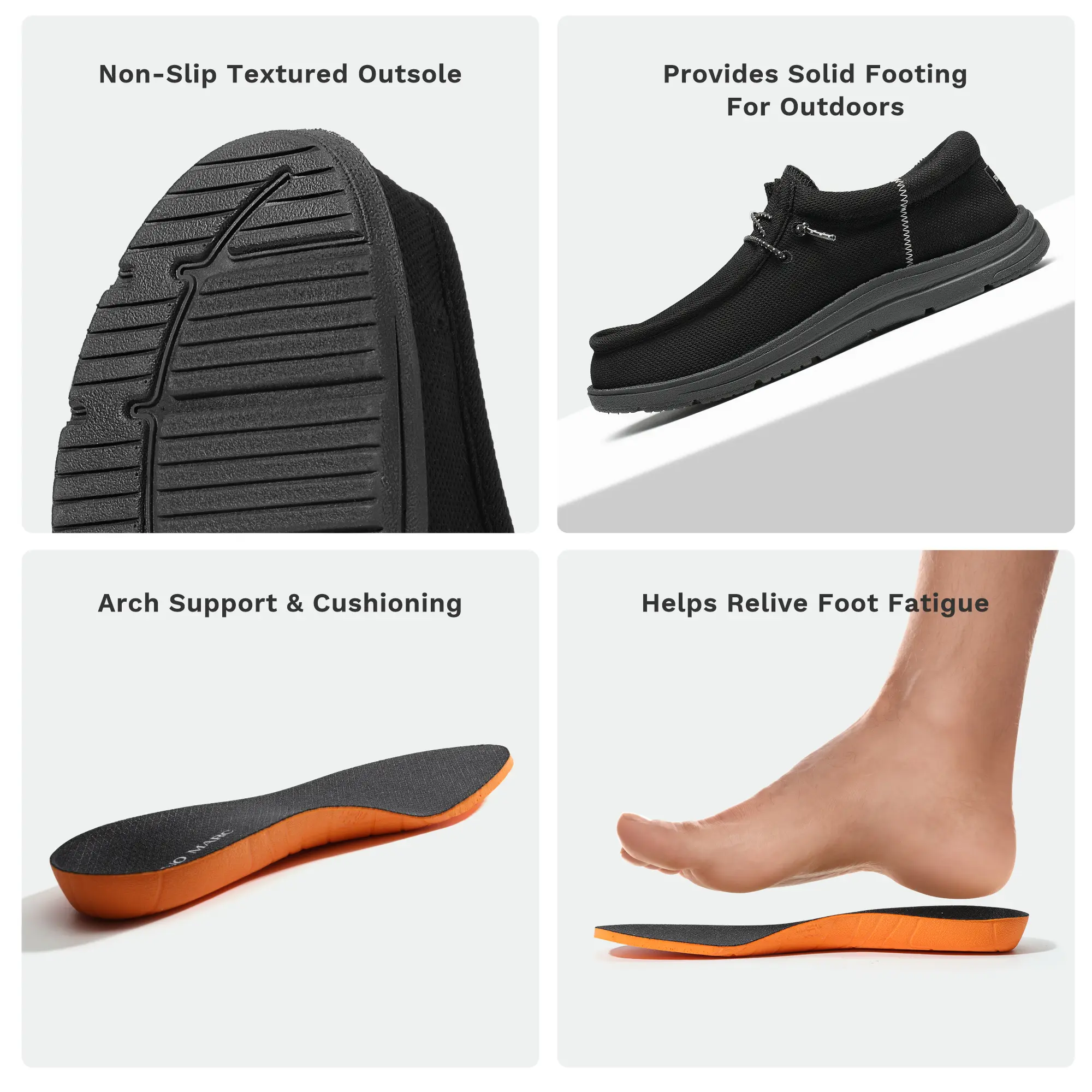 ·Tailored Support: The cushioned insole features a soft surface and arch support that contours to your feet, offering personalized comfort while helping reduce fatigue—making these casual shoes for men ideal for all-day wear.