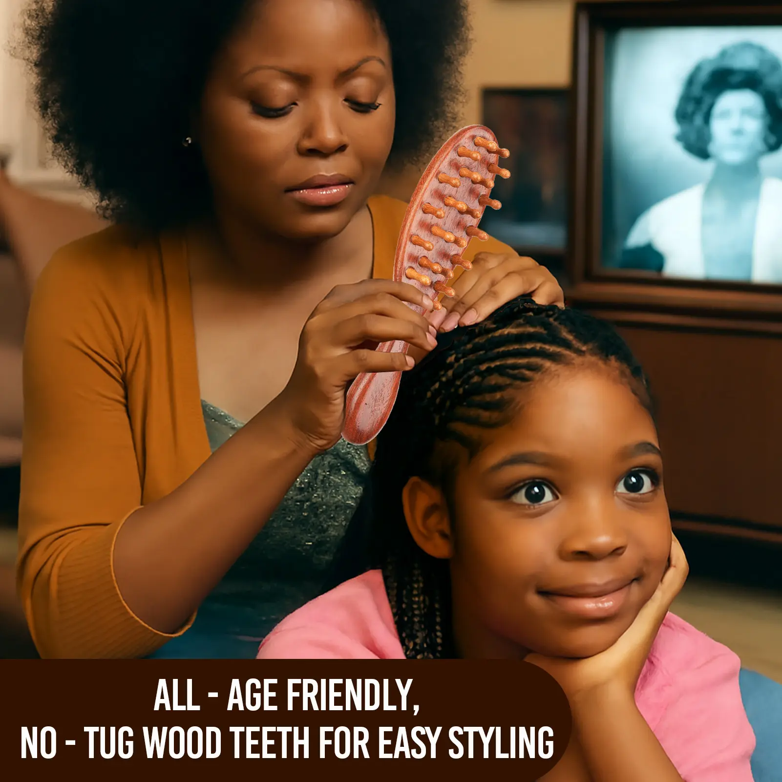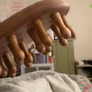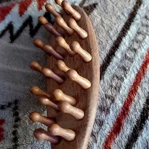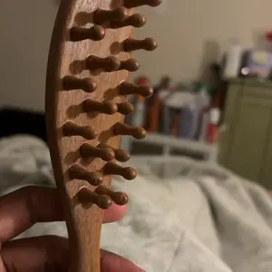 Nice and sturdy, natural wood, and brushes through with ease. I don’t have to worry about snagging my nails while brushing through my locs. Gently brush through your locs and not at the root!