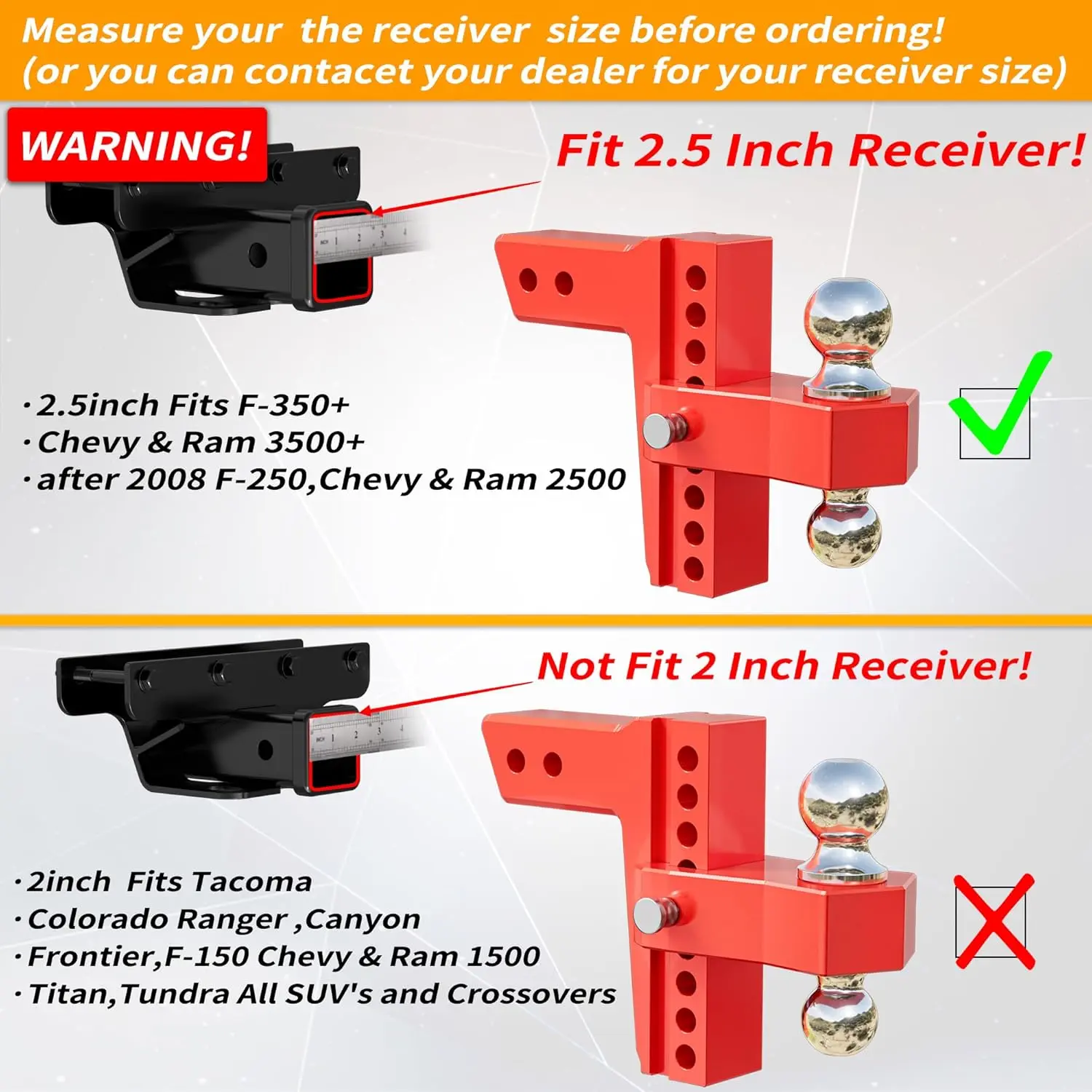 ·Versatile Usage: Our standard 2.5"*2.5" receiver can perfectly fit any connector of trailer, rear bumper, agricultural machines and dual receiver extender with the same size, Aluminum shank can be adjusted according to your needs