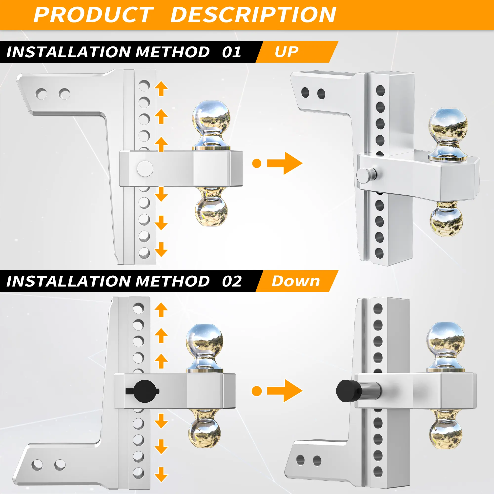 Heavy-Duty Strength → 2" ball → 8,000 lbs | 2-5/16" ball → 18,500 lbs. Tow RVs, trucks, or trailers effortlessly.