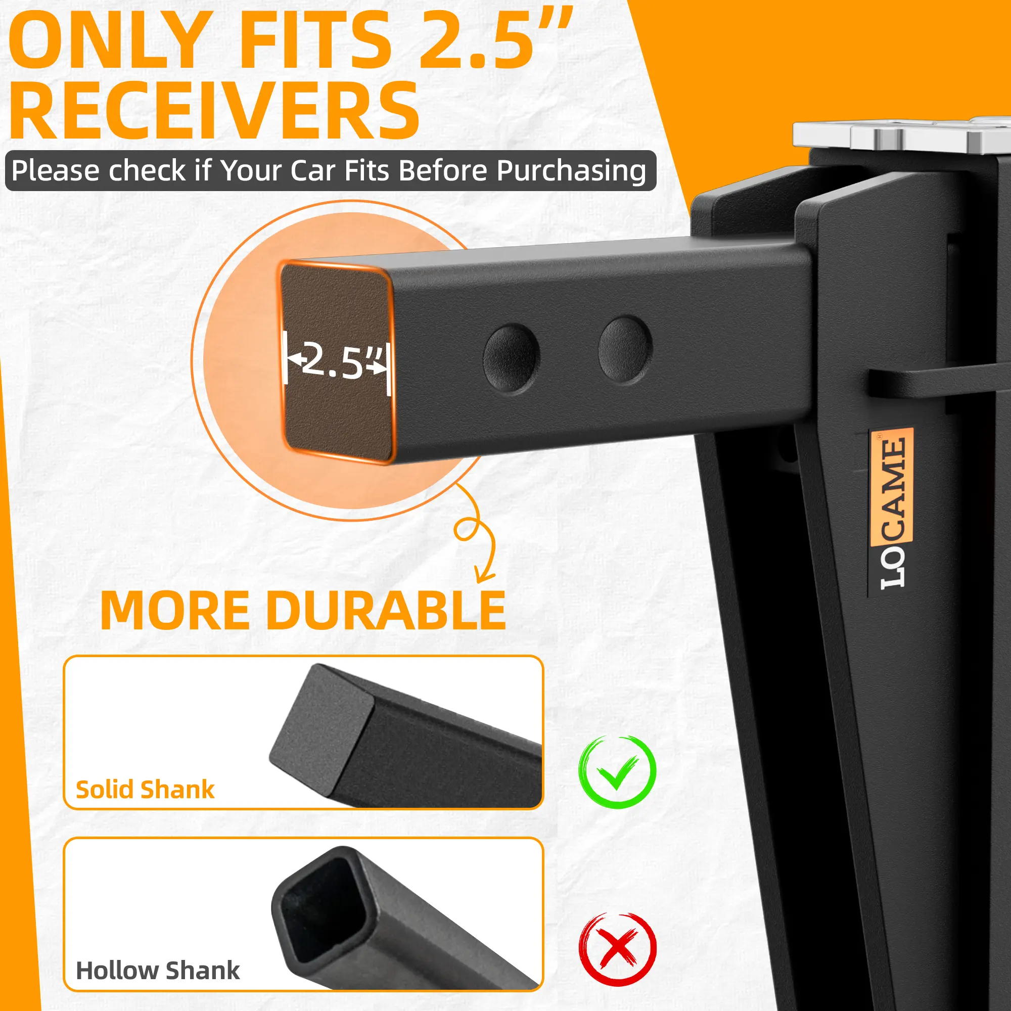 Universal Fit → Perfect for any 2.5" receiver: trucks, SUVs, RVs, farm equipment