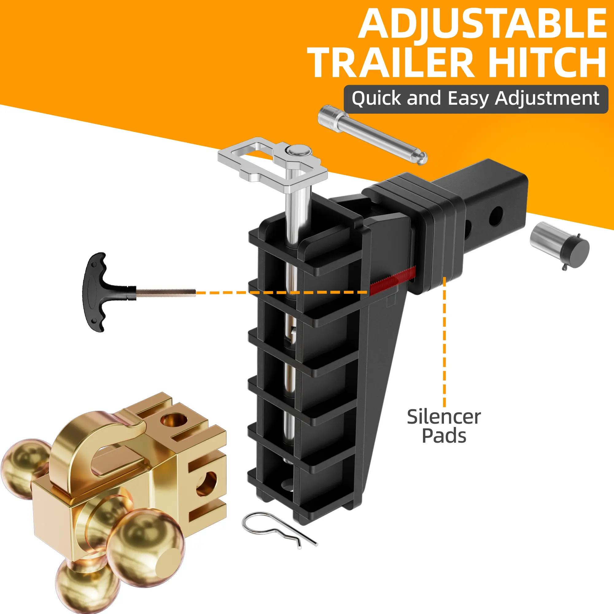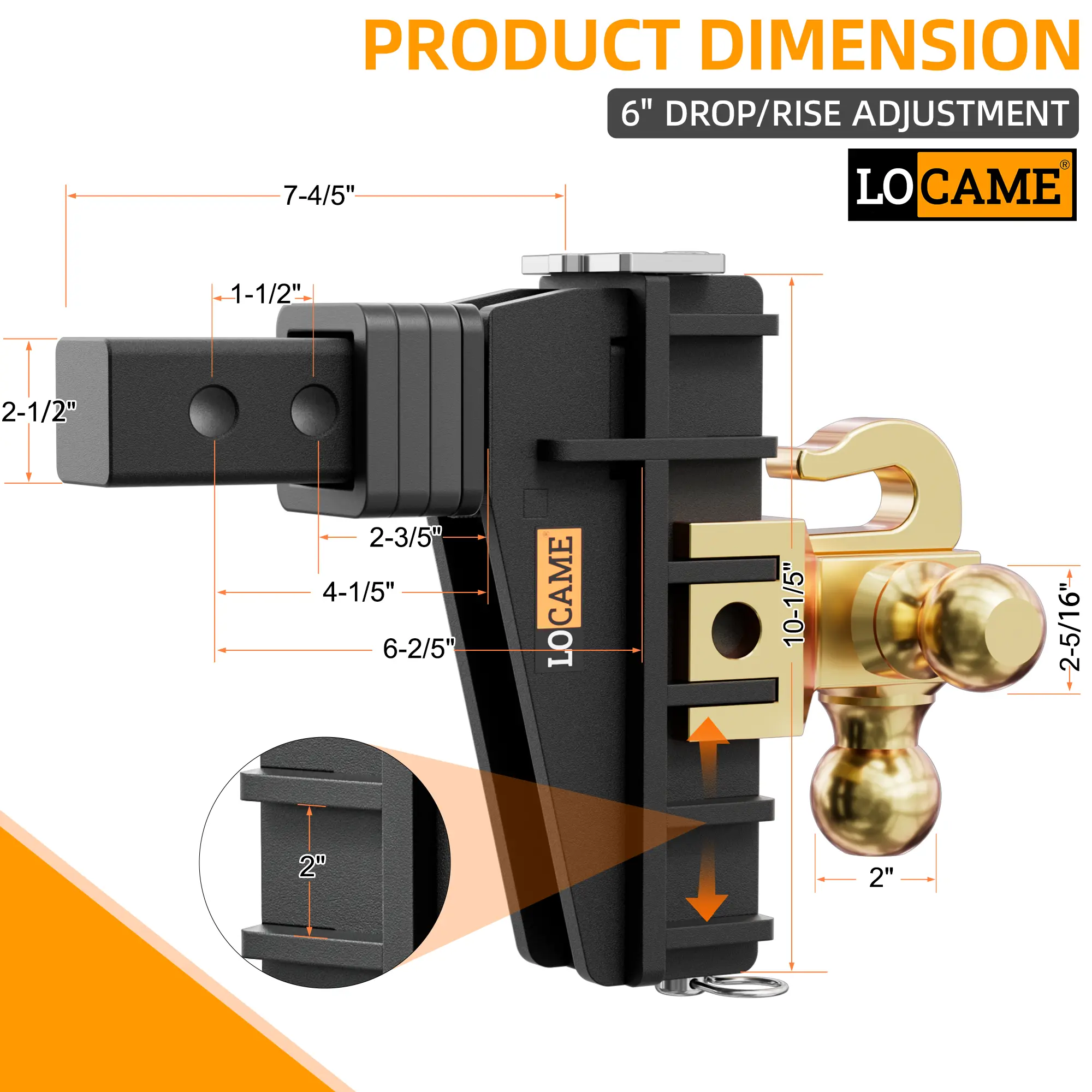 Stop stressing about towing — the LOCAME 2.5" Tri-Ball Hitch with Hook is built for MAX safety and strength.