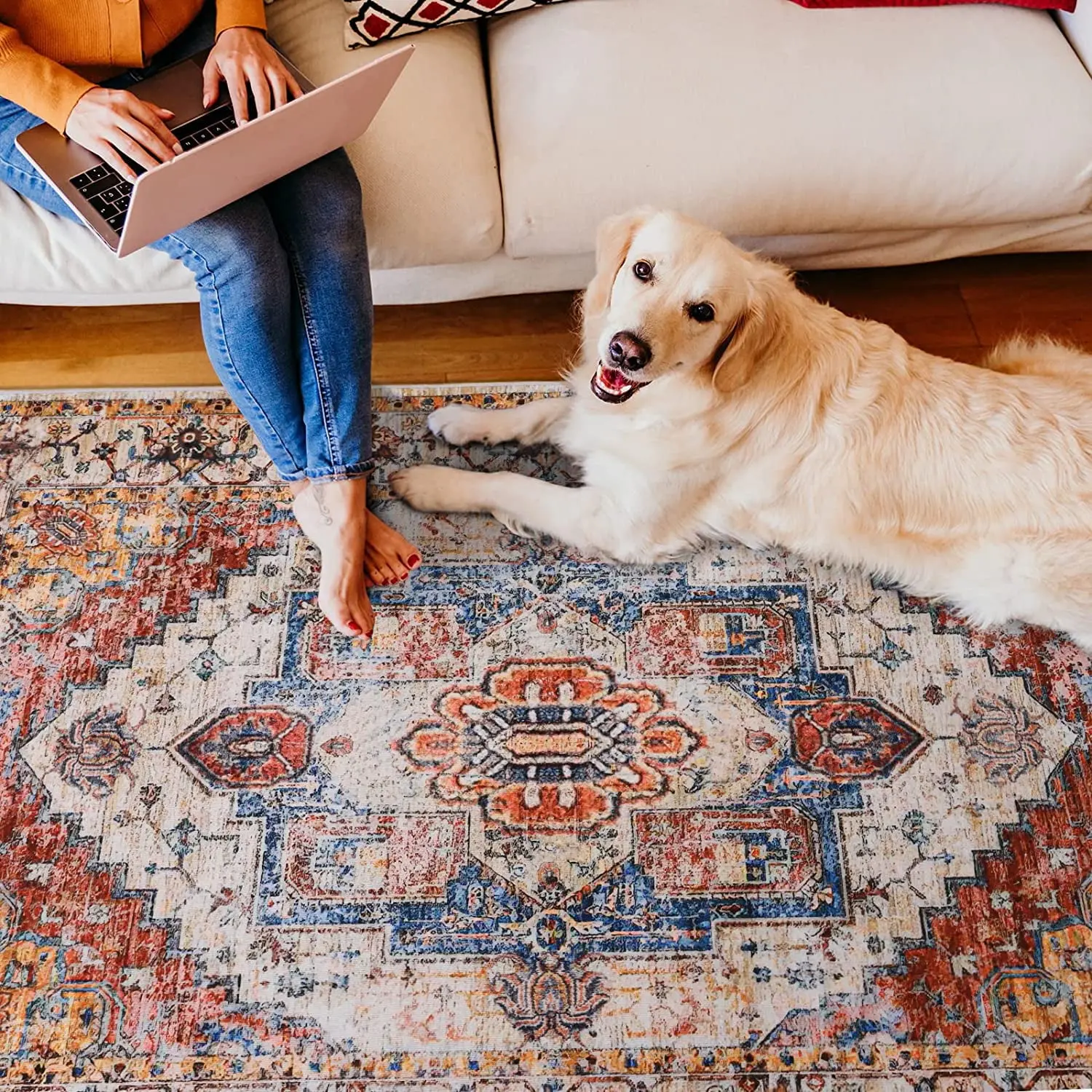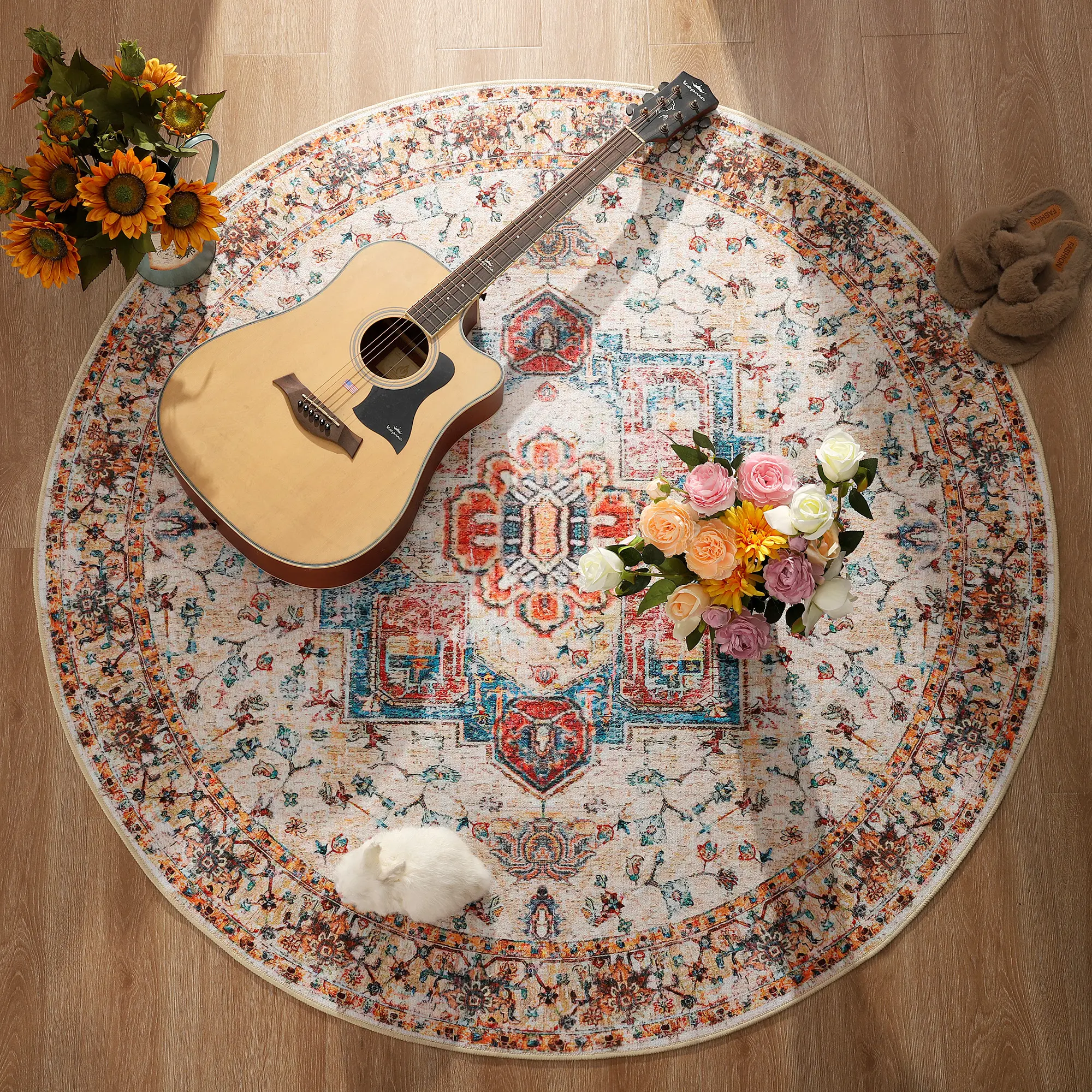 Lochas Boho Area Rug Vintage Tribal Carpet Anti-Slip Rug Washable Persian Carpet for Living Room Bedroom