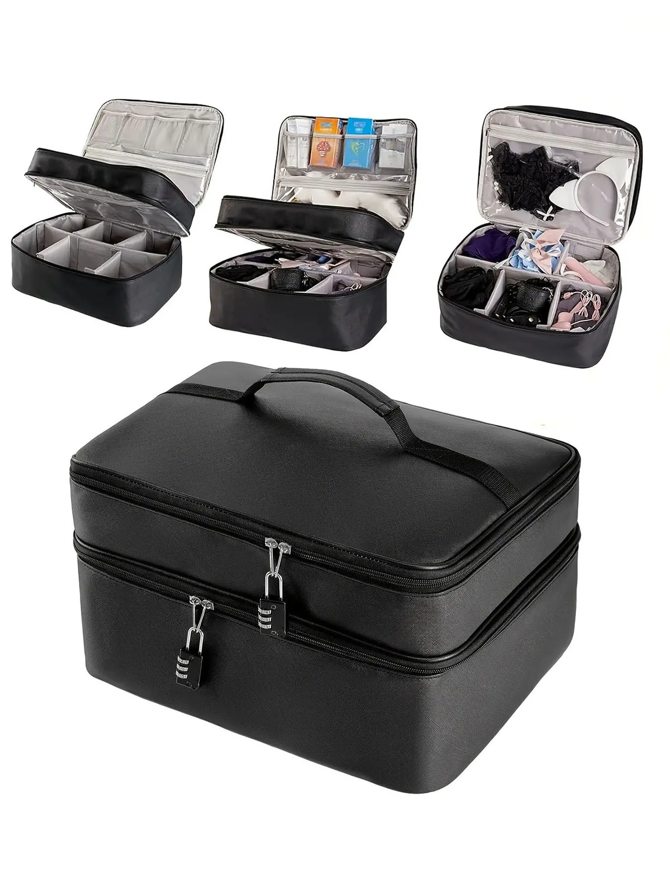 Lockable Adult Toy Storage Bag, Dual-Layer Large Capacity, Travel Underwear Organizer, Personal Privacy Protect Essential, Space Saving Bags
