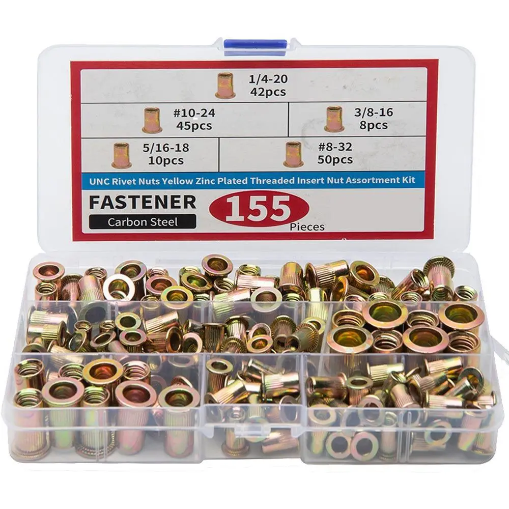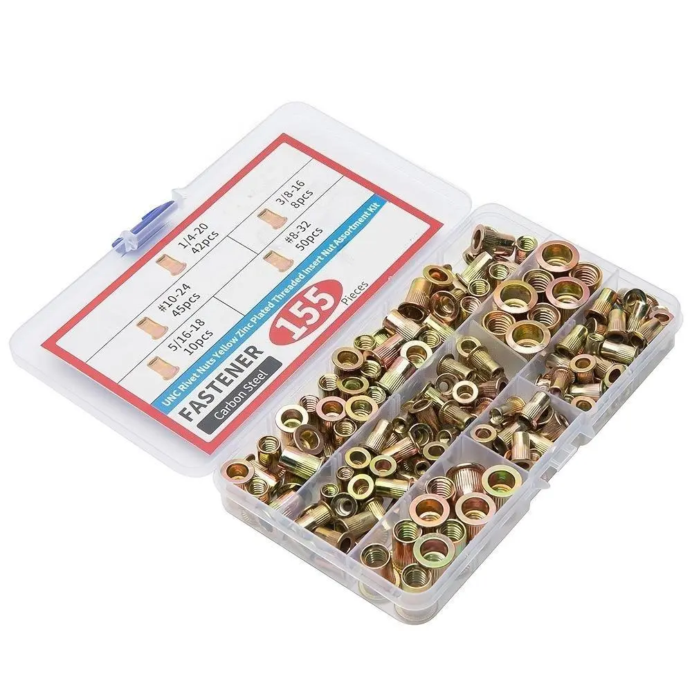 Locking nut combination set, nut kit, flat-head threaded embedded nut combination set.