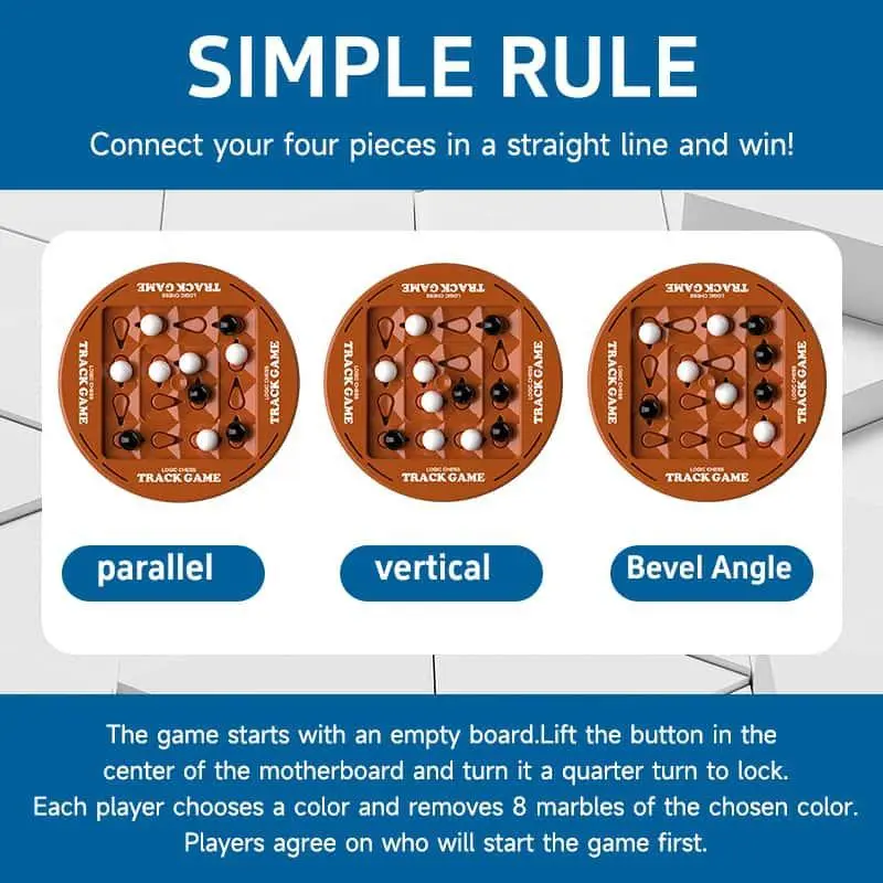 Logic Track Chess 2 Player Battle Game Educational Brain Development Toy for Kids! This Logic Track Chess game is perfect for birthday gifts. It's a 2-player fast strategy game that promotes puzzle-solving skills. The game includes a chessboard, instruction manual, 8 white pieces, and 8 black pieces. Ideal for ages 3+. What's Included: Chessboard x1 Instruction manual x1 White pieces x8 Black pieces x8 Two-player game Fast strategy Puzzle game Orbital Logic Chess Orbital Logic Chess is fun and engaging. Kids who love strategy games will enjoy this toy. It's a great educational tool for brain development.