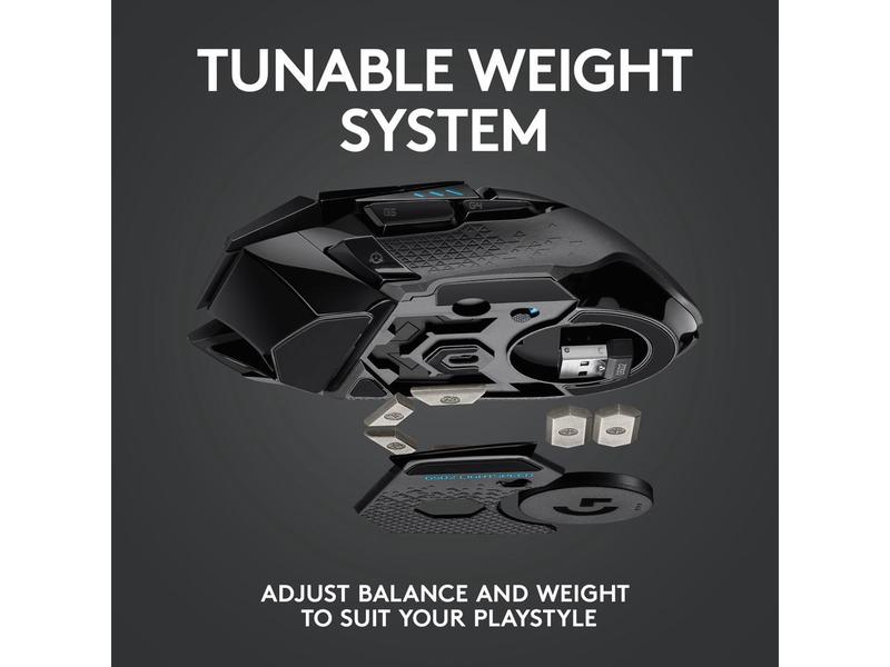 Logitech G502 Lightspeed Wireless Gaming Mouse with Hero 25K Sensor, PowerPlay Compatible, Tunable Weights and Lightsync RGB - Black