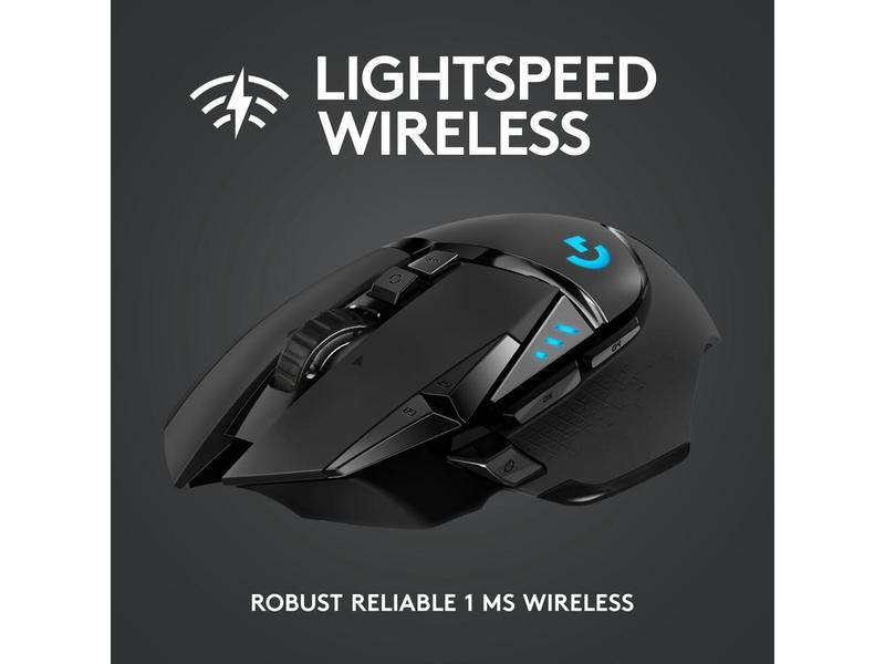 5. Logitech G502 Lightspeed Wireless Gaming Mouse with Hero 25K Sensor, PowerPlay Compatible, Tunable Weights and Lightsync RGB - Black