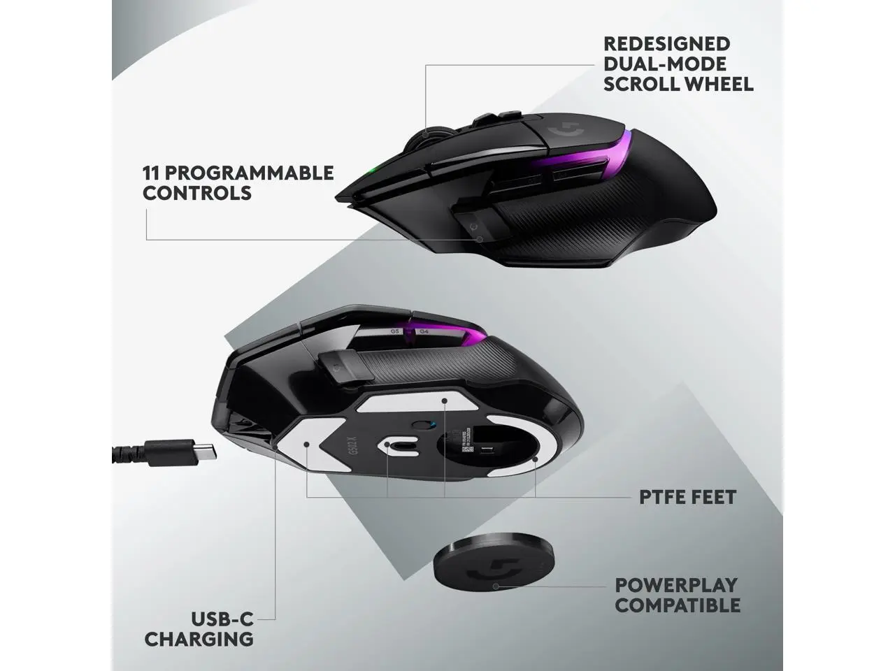 5. Logitech G502 X PLUS LIGHTSPEED Wireless RGB Gaming Mouse - Optical mouse with LIGHTFORCE hybrid switches, LIGHTSYNC RGB, HERO 25K gaming sensor, compatible with PC - macOS/Windows - Black