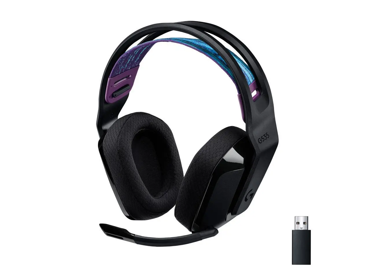 Logitech G535 LIGHTSPEED Wireless Gaming Headset - Lightweight on-ear headphones, flip to mute mic, stereo, compatible with PC, PS4, PS5, USB rechargeable - Black