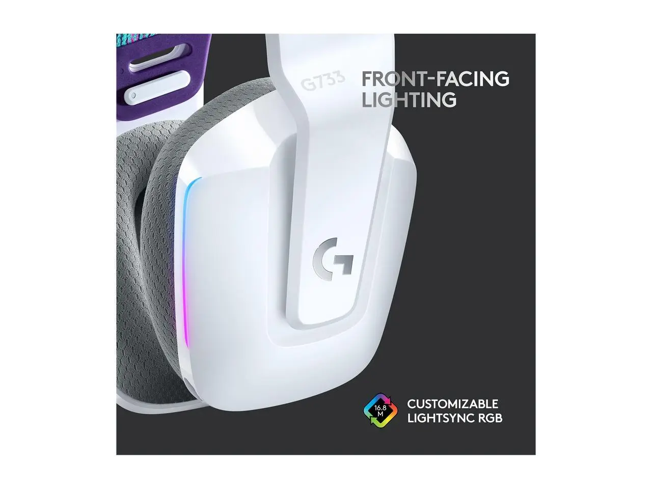 Logitech G733 LIGHTSPEED Wireless Gaming Headset with suspension headband, LIGHTSYNC RGB, Blue VO!CE mic technology and PRO-G audio drivers - White