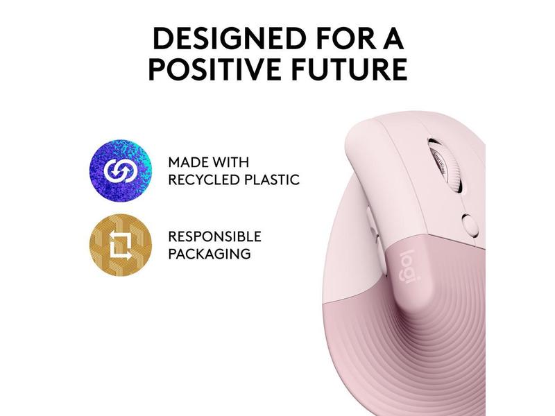 Logitech Lift Vertical Ergonomic Mouse, Wireless, Bluetooth or Logi Bolt USB receiver, Quiet clicks, 4 buttons, compatible with Windows/macOS/iPadOS, Laptop, PC - Rose