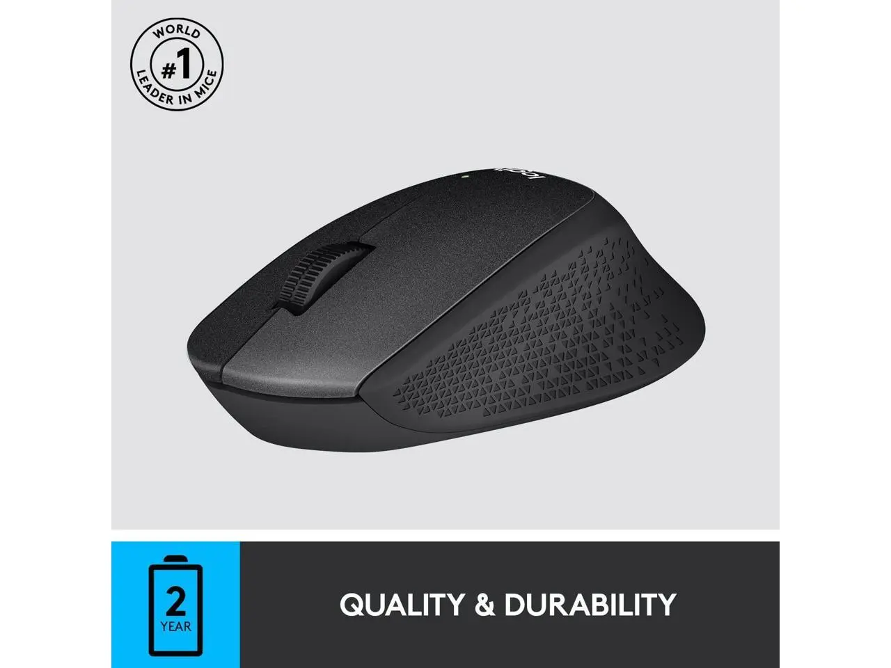 Logitech M330 Silent Plus advanced wireless USB mouse in black color improves office productivity as it silently glides along the desk, minimizing distracting noises. Logitech optical motion tracking technology and a rubber scroll wheel make navigating multiple computer application pages a breeze, allowing employees to concentrate on getting things done. This mouse may be connected to a variety of devices wirelessly via an included nano receiver, allowing the mouse to be up to 33 feet away from the computer.