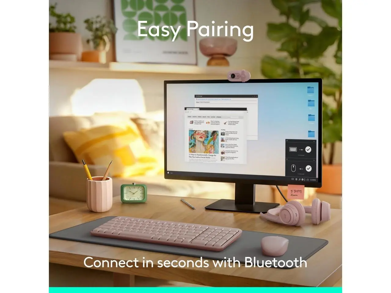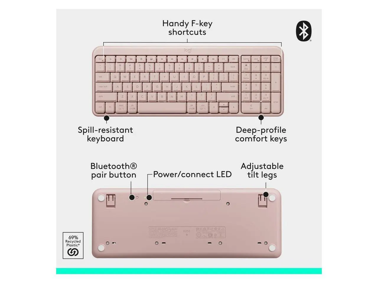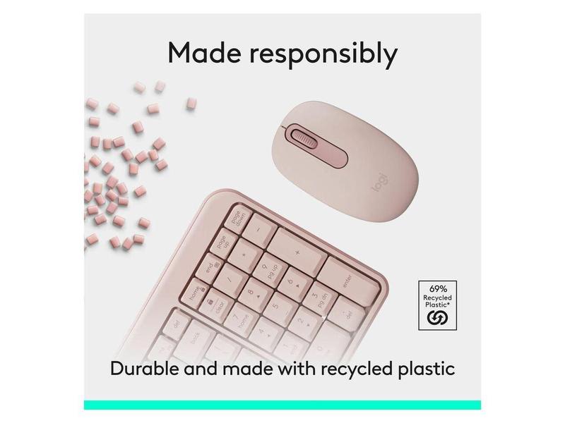 Logitech MK250 Bluetooth Wireless Mouse and Keyboard Combo: Fast & Easy Connectivity, Compact Wireless Keyboard, Ambidextrous Mouse (Graphite) - Wireless Bluetooth Keyboard - Rose - Wireless Bluet