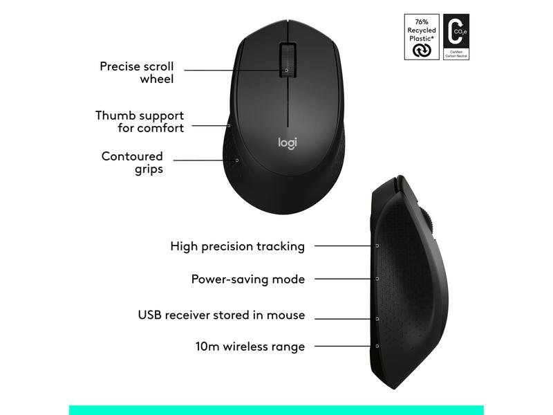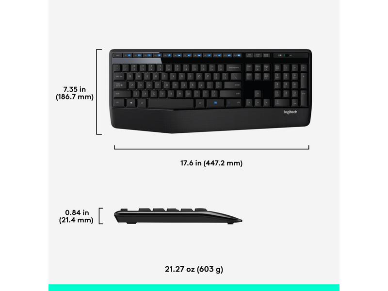 With superb quality, performance and comfort youd expect from Logitech, the MK345 keyboard & mouse wireless combo is a great choice for your home or office use. Type on a full-size keyboard with 12 enhanced F-keys for media control. Skip a song, pause a video or mute audio instantly. Point and click with precision whether you navigate spreadsheets or surf the web. Integrated keyboard palm rest and contoured mouse design mean better comfort even during long hours of operation. One small Nano receiver connects both the mouse and keyboard to your computer. Just plug it into a USB port and youre good to go.