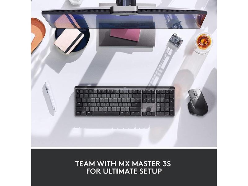 Logitech MX Mechanical Wireless Illuminated Performance Keyboard, Tactile Quiet Switches, Backlit Keys, Bluetooth, USB-C, macOS, Windows, Linux, iOS, Android, Graphite