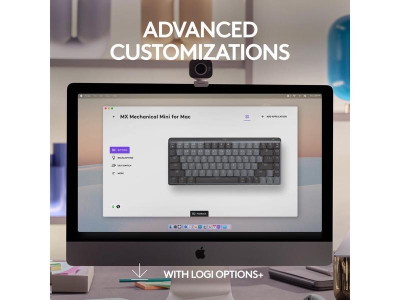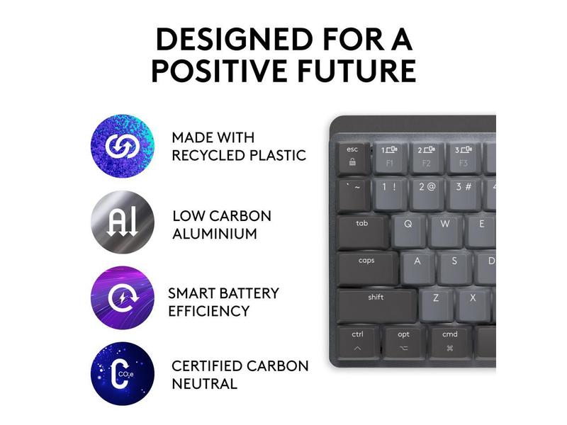 5. Logitech MX Mechanical Mini for Mac Wireless Illuminated Keyboard, Low-Profile Performance Switches, Tactile Quiet Keys, Backlit, Bluetooth, USB-C, Apple, iPad - Space Grey