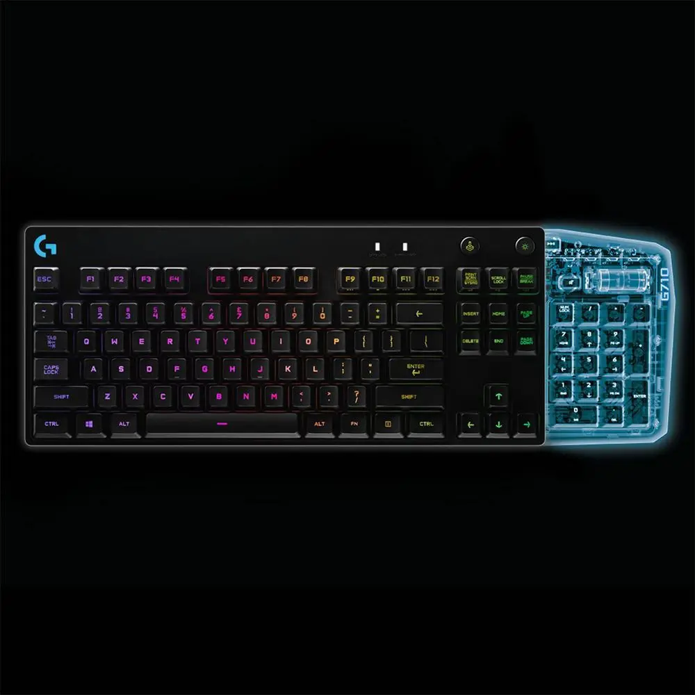 •GX Blue Switches: Mechanical keyboards utilize a different type of key switch technology for a more durable and unique typing experience. The Logitech GX Blue switch has an actuation force of 50g and offers both an audible "click" and a tactile bump when pressed, letting you know that the key has registered. The "click" comes from a mechanism within the switch that triggers when the key reaches its actuation point.