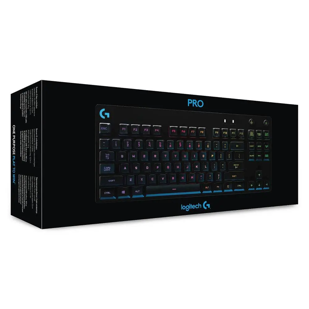 Logitech G Pro Gaming Keyboard is designed and built to the exacting specifications of eSports athletes worldwide. Featuring the fastest and most durable Romer-G switches in a compact and ultra-portable tenkeyless design, plus advanced performance built in: game mode button to disable Windows® key and avoid accidental actuation, macros to execute complex commands in a single keystroke, 87 key anti-ghosting and 26-key rollover for precision control, and onboard memory to store your lighting configuration.