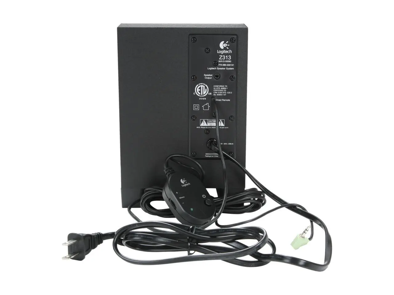 Looking to upgrade your audio game for movies, games, and music? The Logitech Z313 2.1 Multimedia Speaker System brings powerful sound with a compact design that fits perfectly on your desk or entertainment center. Imagine filling your room with rich, balanced audio thanks to the 50 watts peak power and deep bass from the compact subwoofer. Whether you're gaming on your PS4, streaming movies on your TV, or jamming out on your smartphone, these speakers have you covered. The easy-to-use control pod puts volume and headphone controls right at your fingertips, so no fumbling around. Setup is a breeze—just connect the satellites to the subwoofer and plug it into your device using the 3.5mm audio input. The sleek black finish adds a modern touch to any space. Included in the box are the subwoofer, two satellite speakers, and the control pod. Ready to bring your sound to life? Grab the Logitech Z313 and enjoy immersive audio everywhere you go!