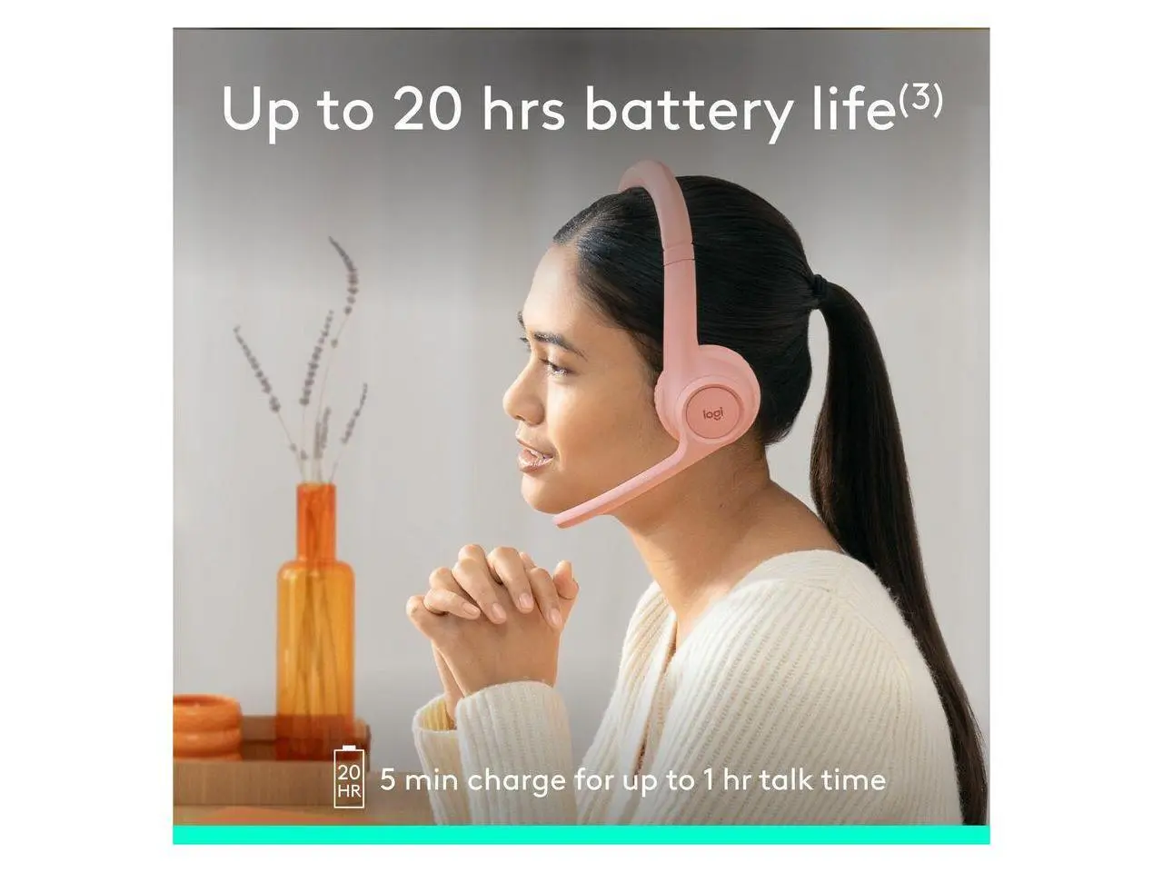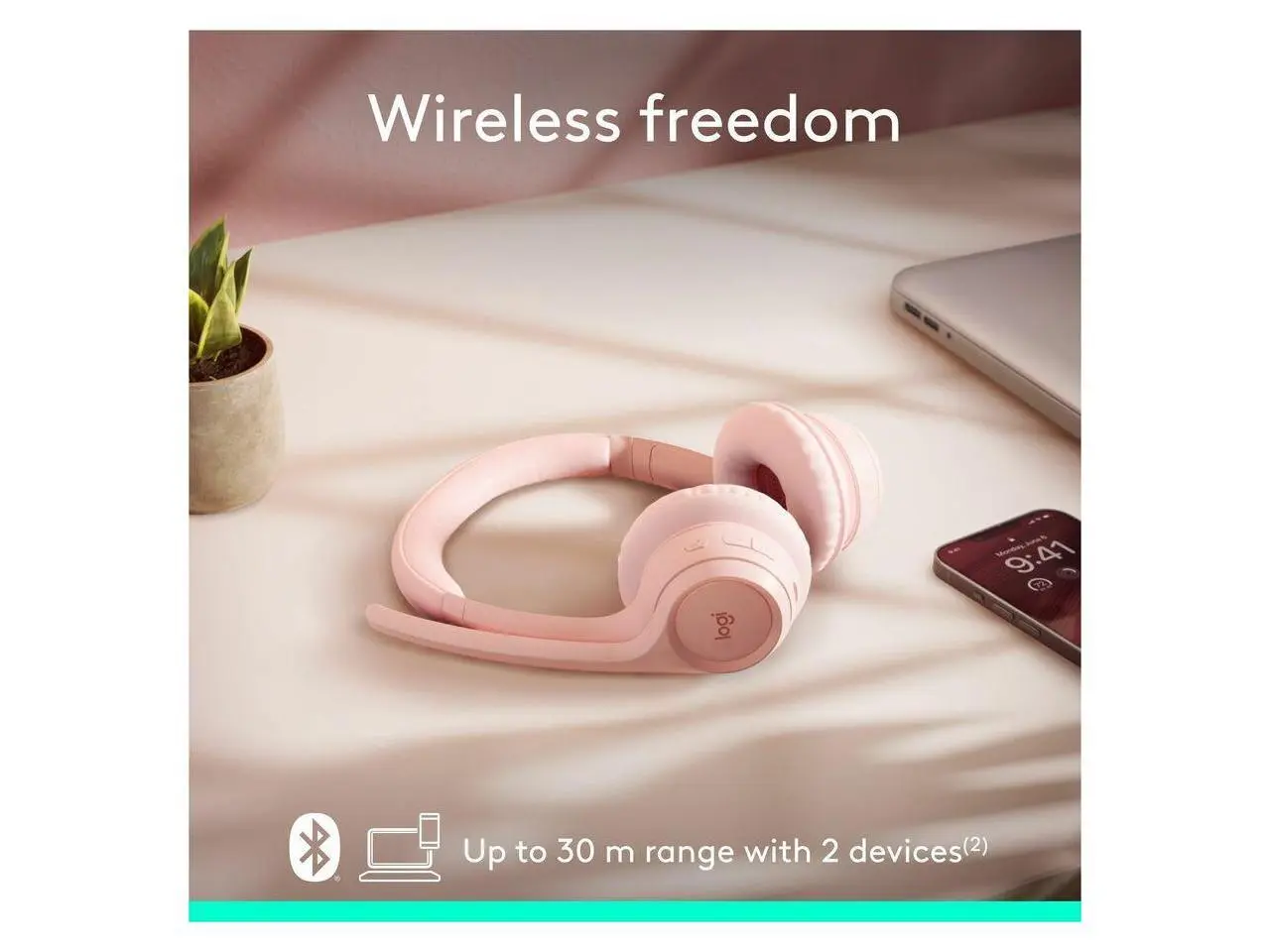 5. Logitech Zone 300 Wireless Bluetooth Headset With Noise-Canceling Microphone, Compatible with Windows, Mac, Chrome, Linux, iOS, iPadOS, Android - Rose