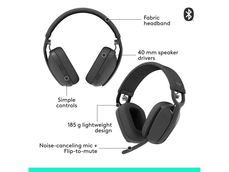 Logitech Zone Vibe 100 Lightweight Wireless Over Ear Headphones with Noise Canceling Microphone, Advanced Multipoint Bluetooth Headset, Works with Teams, Google Meet, Zoom, Mac/PC - Graphite