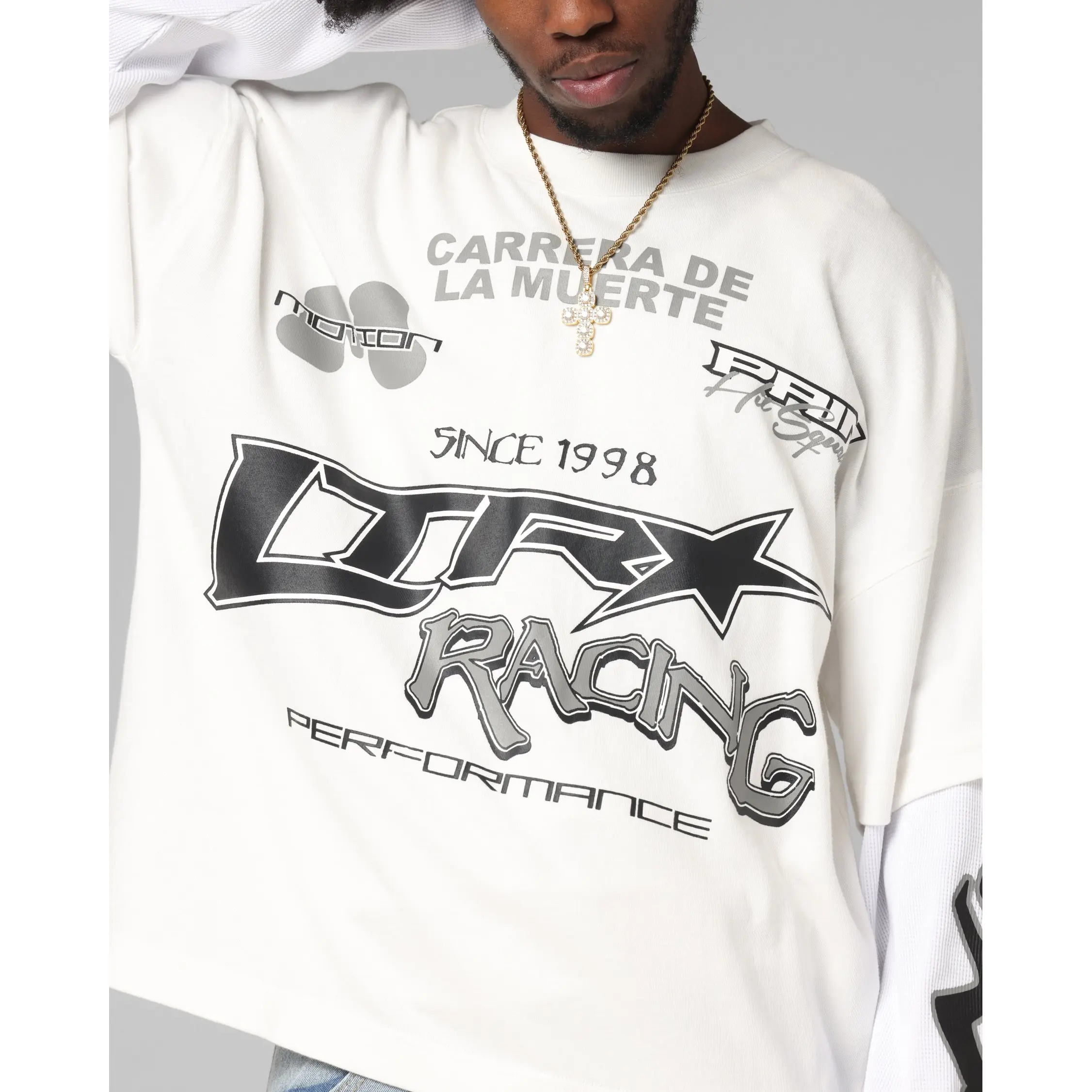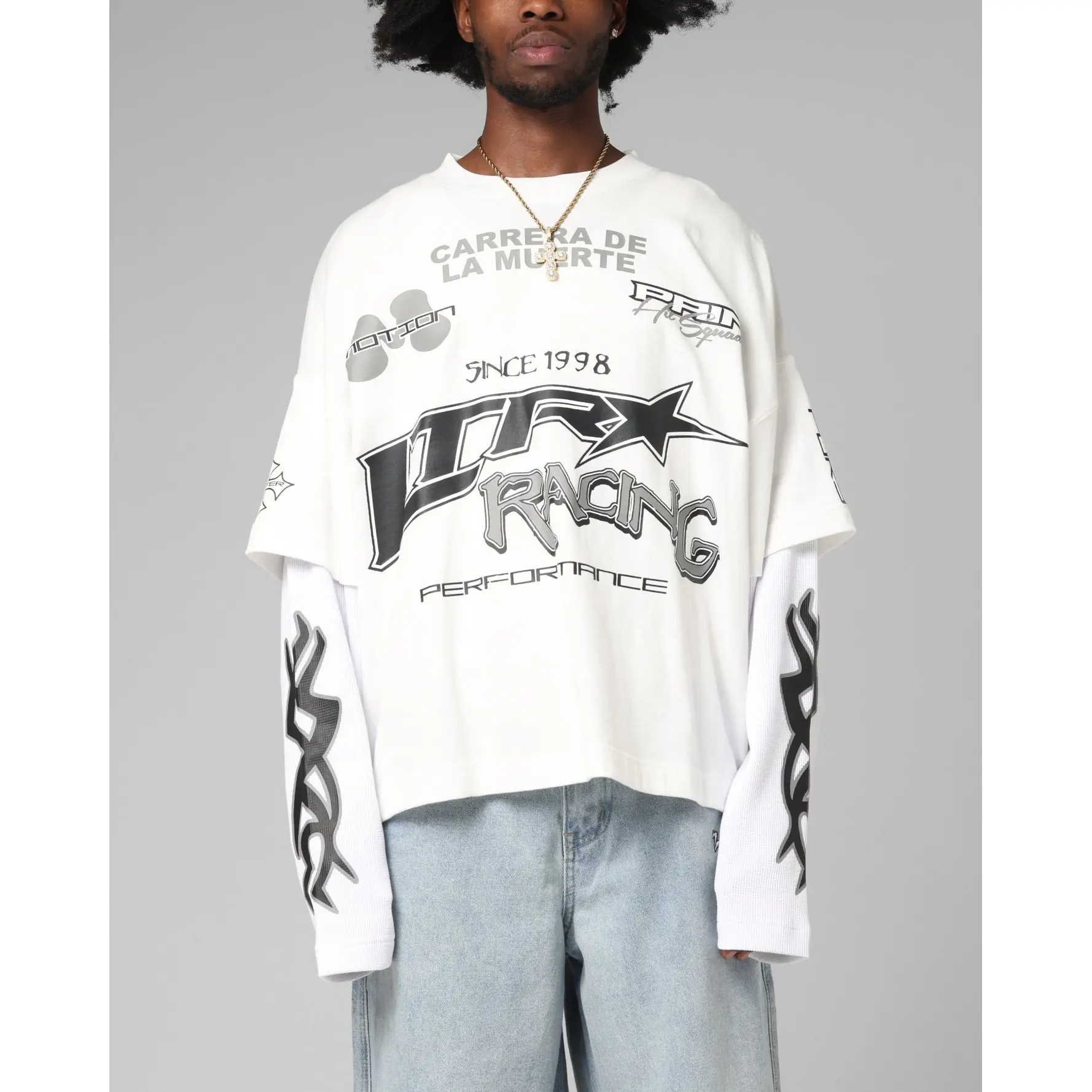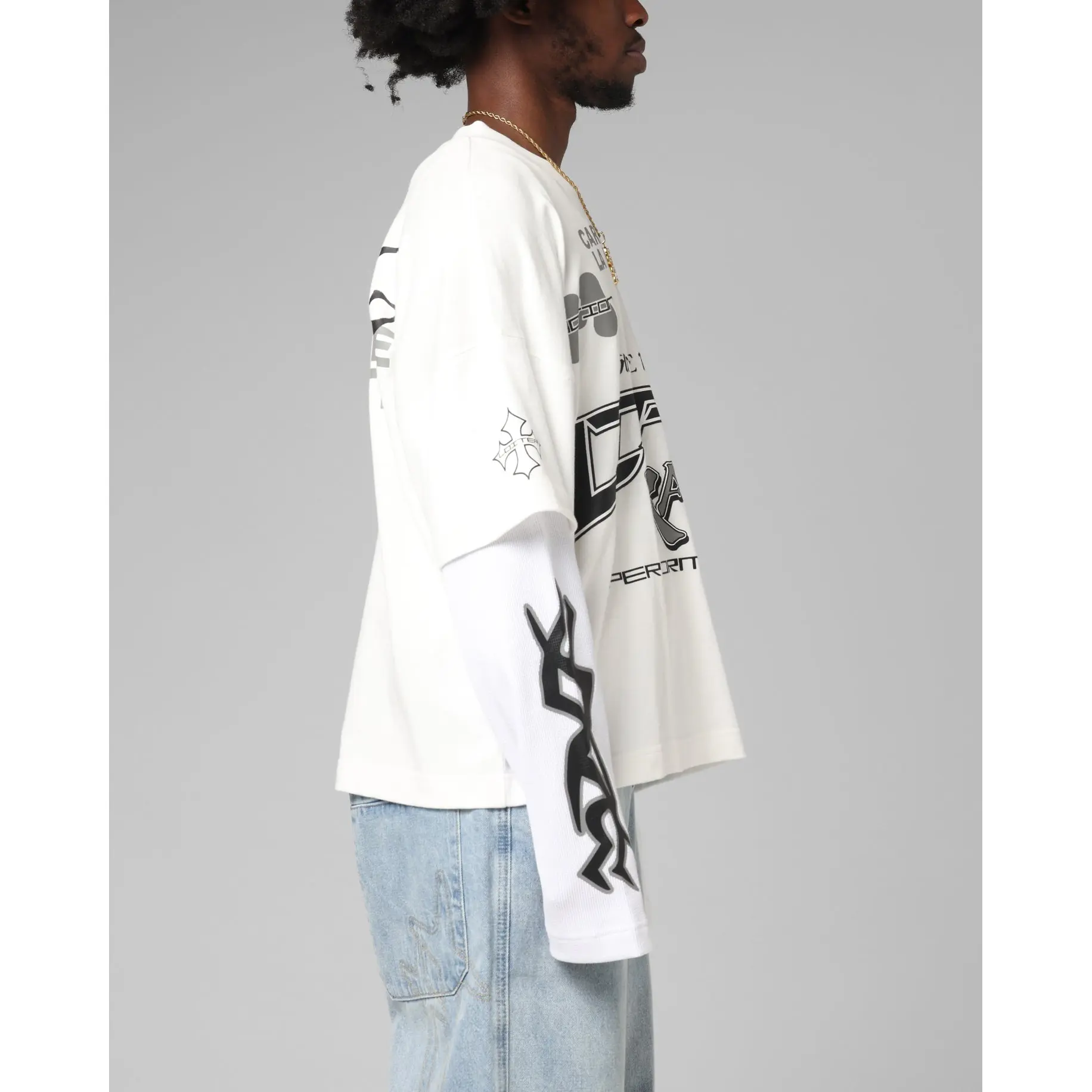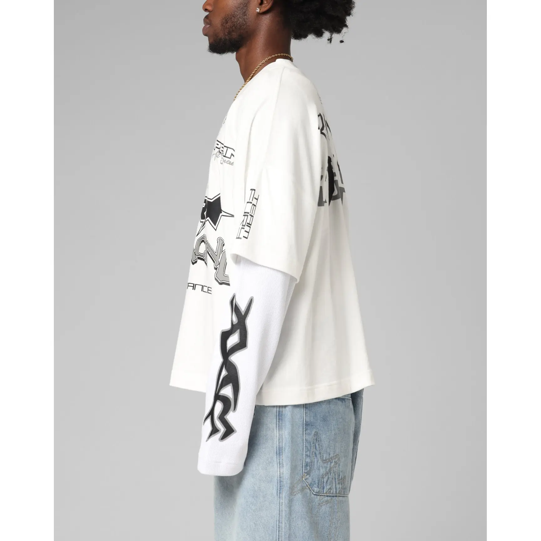 Make the ultimate statement in the Performance Layered Long Sleeve T-Shirt by Loiter. Created to stand out, this tee boasts inspiring printed graphics on an incredibly soft cotton tee with contrast ribbed long sleeves for a double-layered look. It is complemented with dropped shoulders to keep the laidback, streetwear vibes going. Cop yours today at Culture Kings, only while stock lasts.