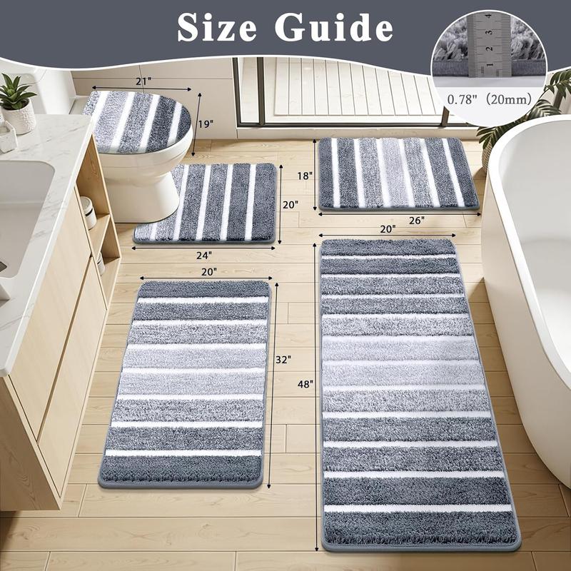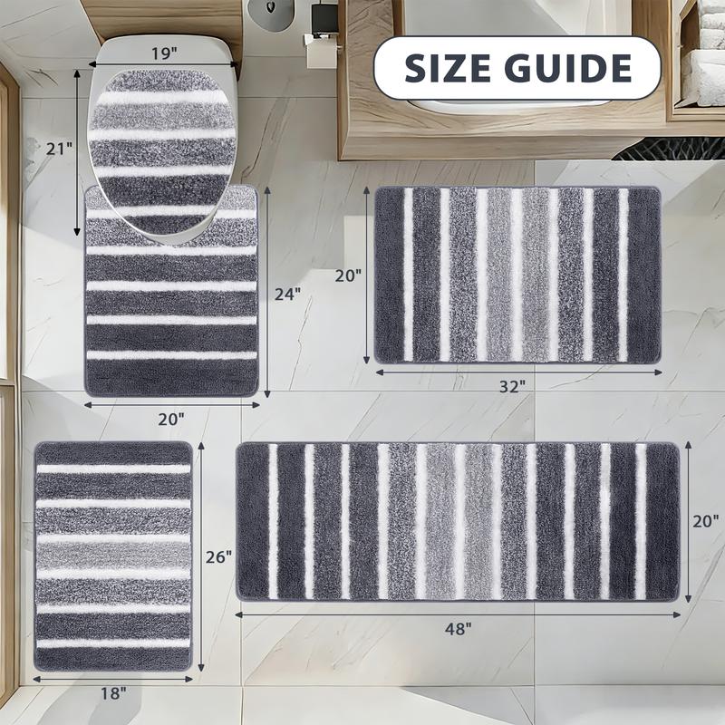 ·Includes: 20'' x 48'', 32'' x 20'', 18'' x 26'' bath rug runners, 20'' x 24'' U-Shaped counter rug, and 19'' x 21'' toilet lid cover.
