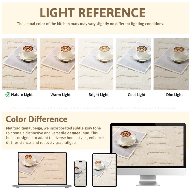 The non-slip rugs are designed with soft and medium pile, ensuring they are non-shedding. They help prevent dust and pet hair accumulation, making them ideal for homes with children and pets. The colors may slightly differ from the actual product due to monitor display and light effects.