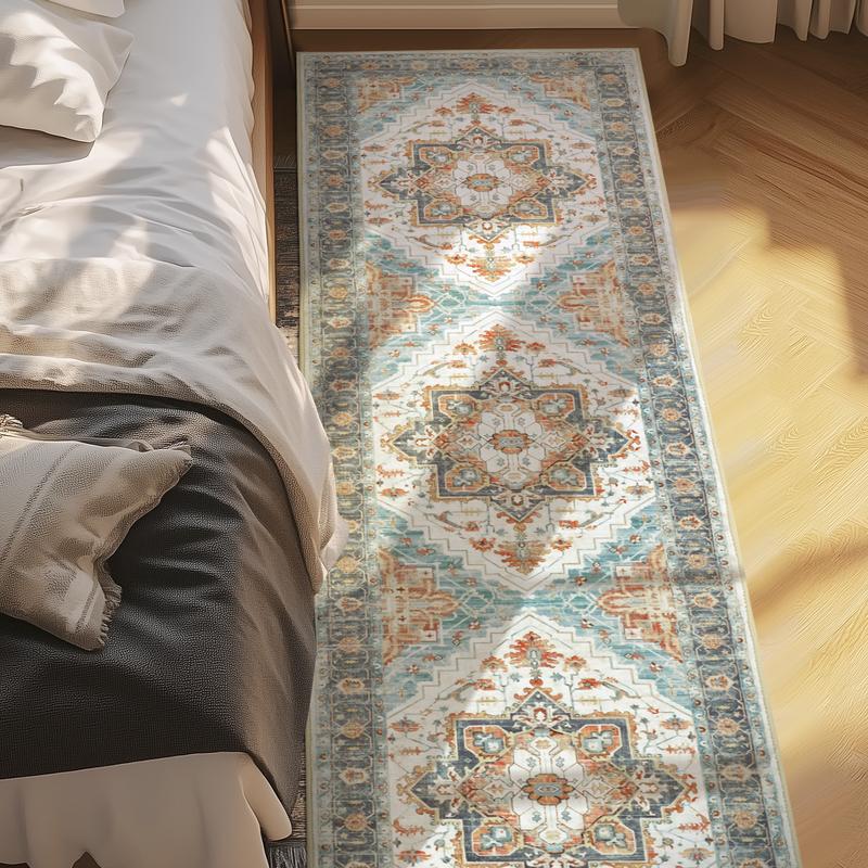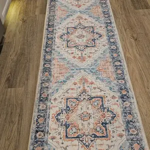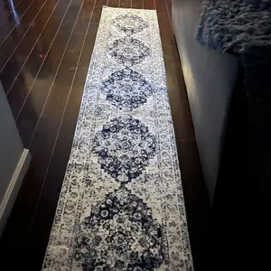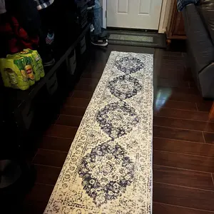I couldn't possibly love this more than I do. I have a 2x8 on its way and I ordered another 2x8 for my hallway! This one is 2x6 for my door entrance absolutely spectacular deal & the colors are stunning. This is the blue on beige, non slip and oh so soft!