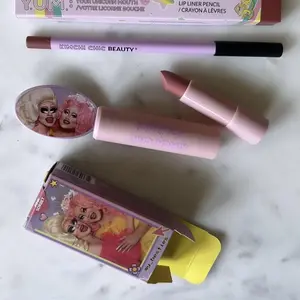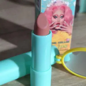 i LOVE. it’s a very pretty nude pink and i usually hate nude pinks on me. also the packaging is so fun and cute. there’s a compact mirror, and you have to push the little button and it pops out