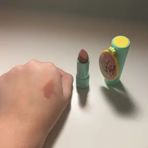 i LOVE. itās a very pretty nude pink and i usually hate nude pinks on me. also the packaging is so fun and cute. thereās a compact mirror, and you have to push the little button and it pops out