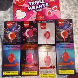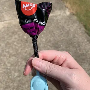 I was so stoked to receive my lollipop! I was also surprised to get not one but TWO mystery bags of candy. The sour rainbow rolls weren't that sour but scrumptious nonetheless. The lollipop was definitely worth it. The watermelon flavor was great. Thanks Amos, shout-out to Aiden and Harper!