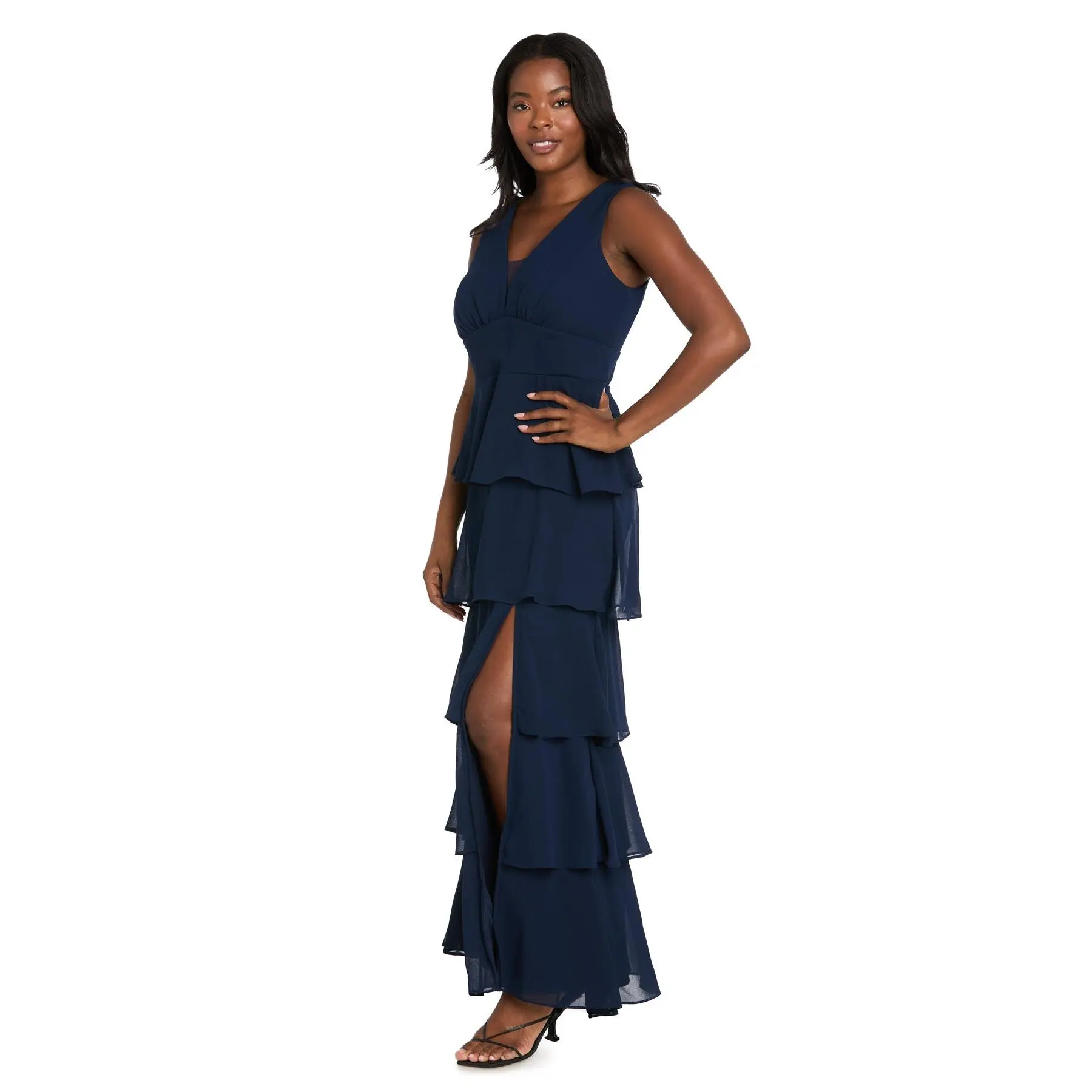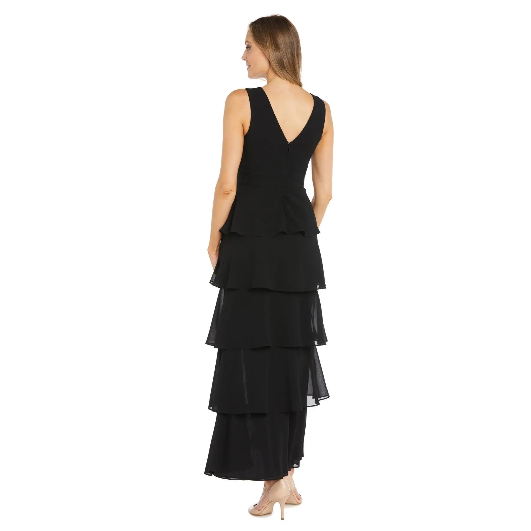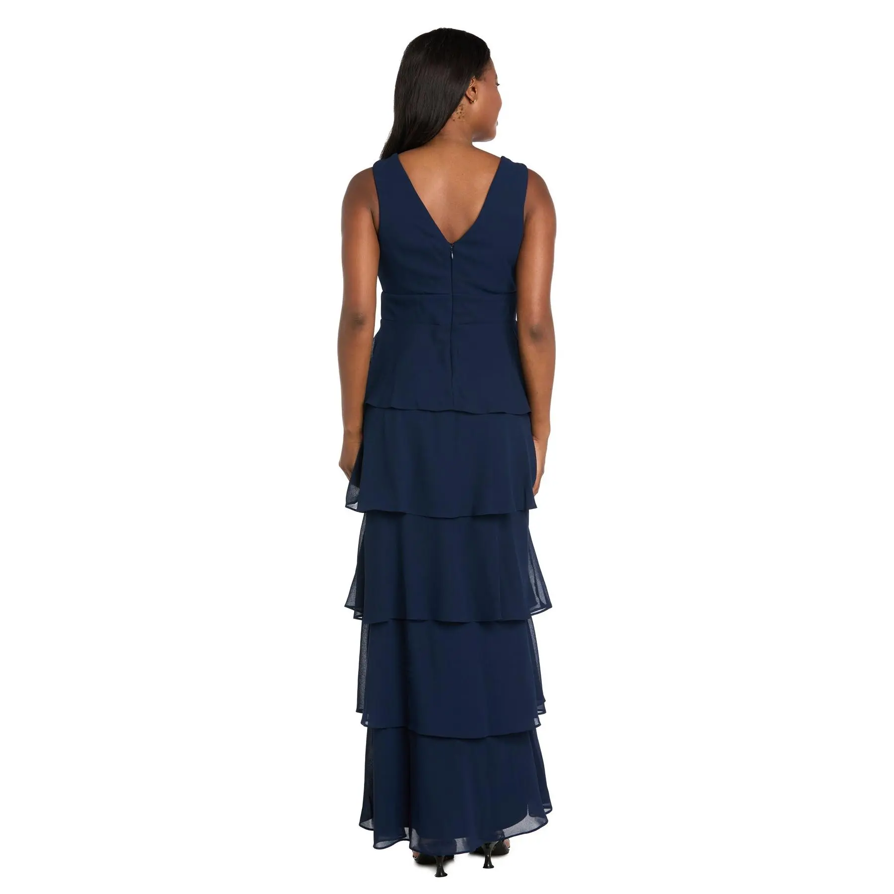 Long Chiffon Dress Featuring a Five Layered Skirt & V-Neck Insert