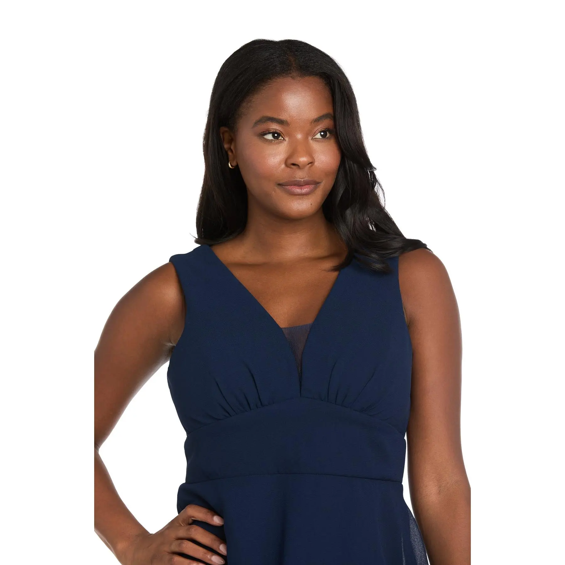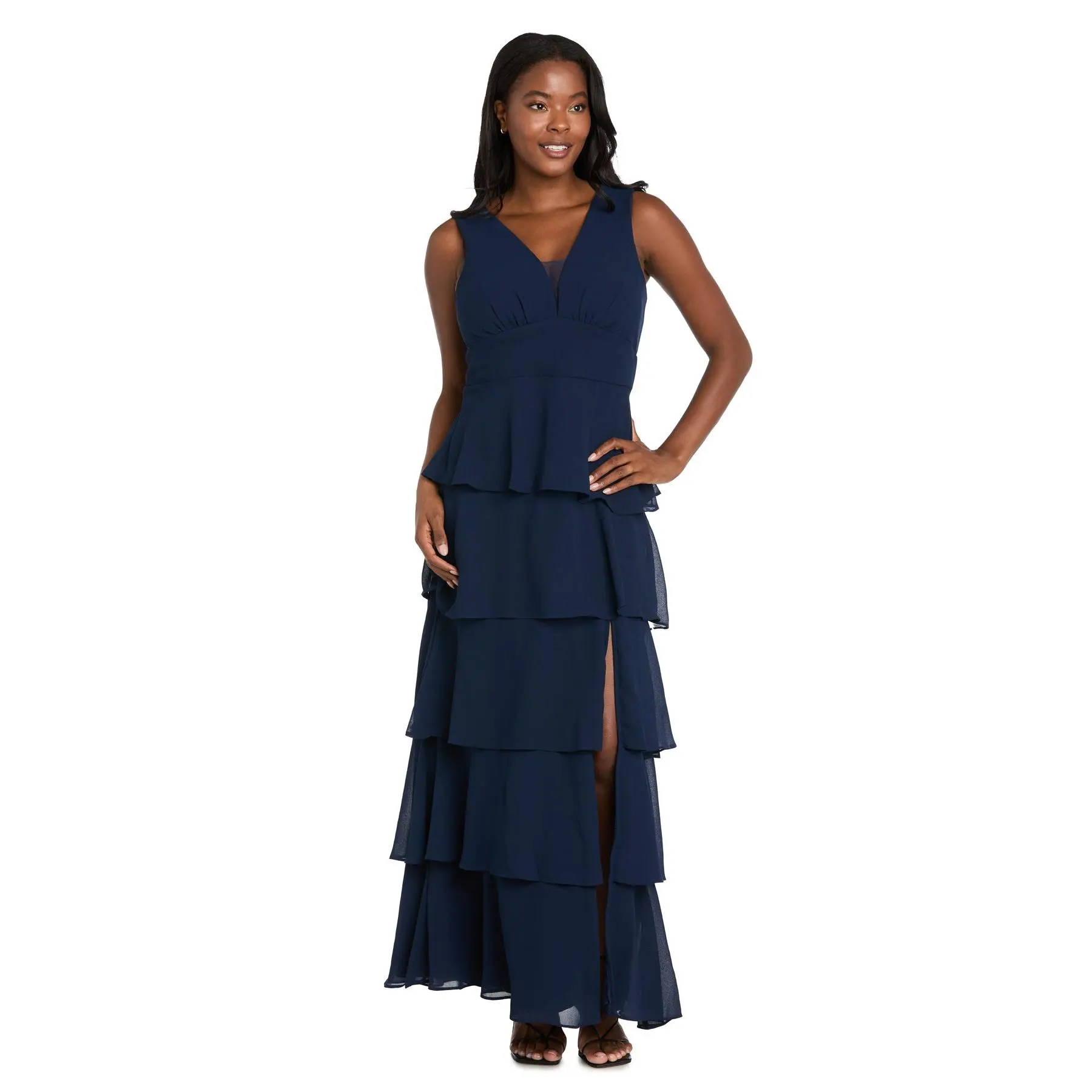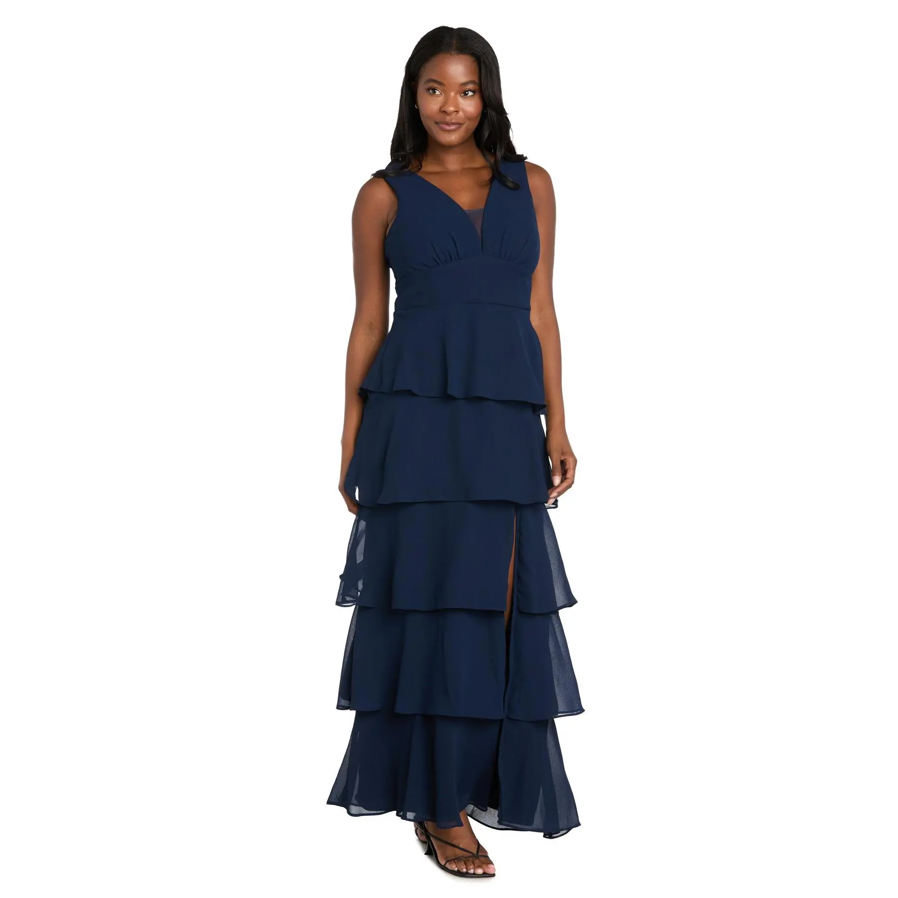 Long Chiffon Dress Featuring a Five Layered Skirt & V-Neck Insert