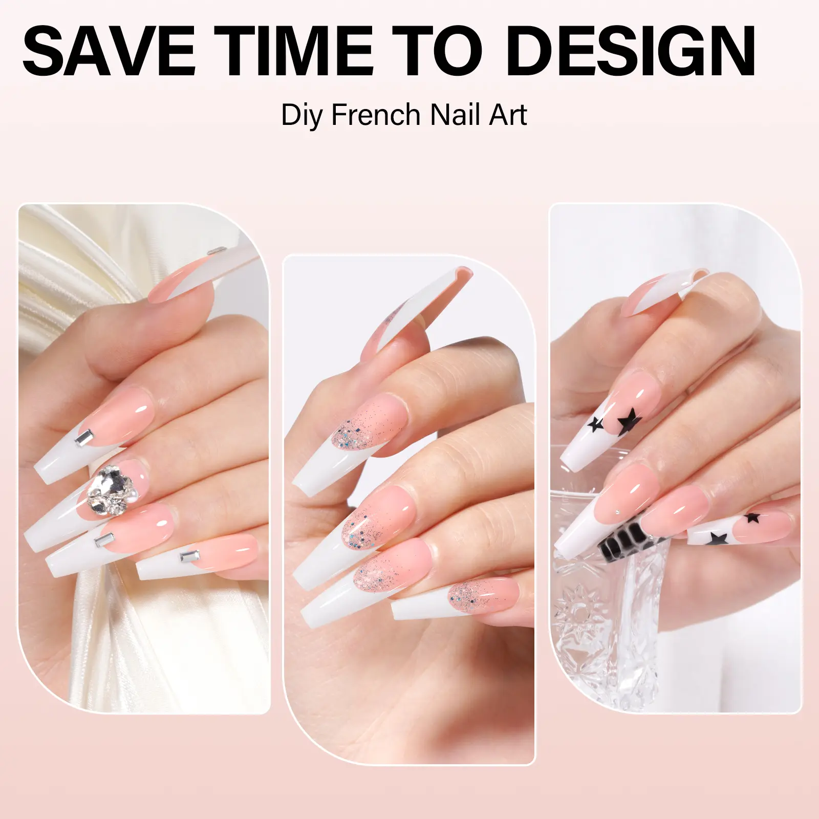 Was not happy with these nails, the french rubs off in a few days and top coat does not stick well